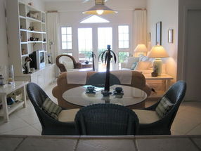 This 2 bedroom 2 bath unit comes fully furnished with an open floor plan of the kitchen, dining and living room areas.