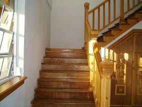 It is tiled throughout in the living areas and wood floors in the bedrooms.