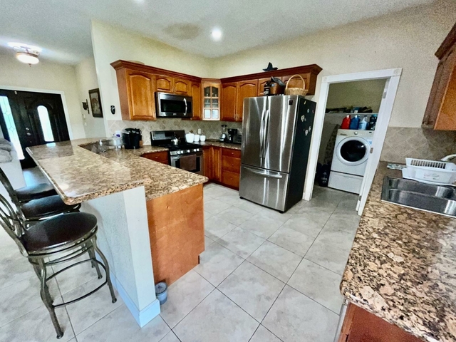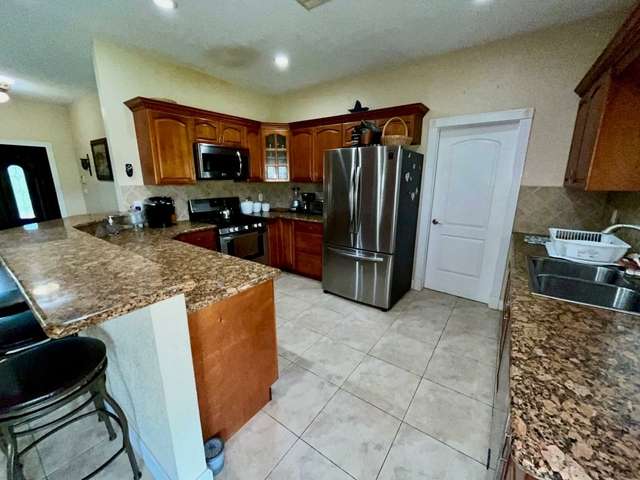 This lovely four-bedroom, three-bath home is located in the quiet, family-oriented neighborhood of Lincoln Park in Freeport, Lucaya. The home boast of a metal roof and hurricane impact windows. You are greeted with Stainless Steel French doors. It has Central air as well as 3 split AC units, propane stove, stainless steels refrigerator with bottom freezer, washer, dryer and water heater.