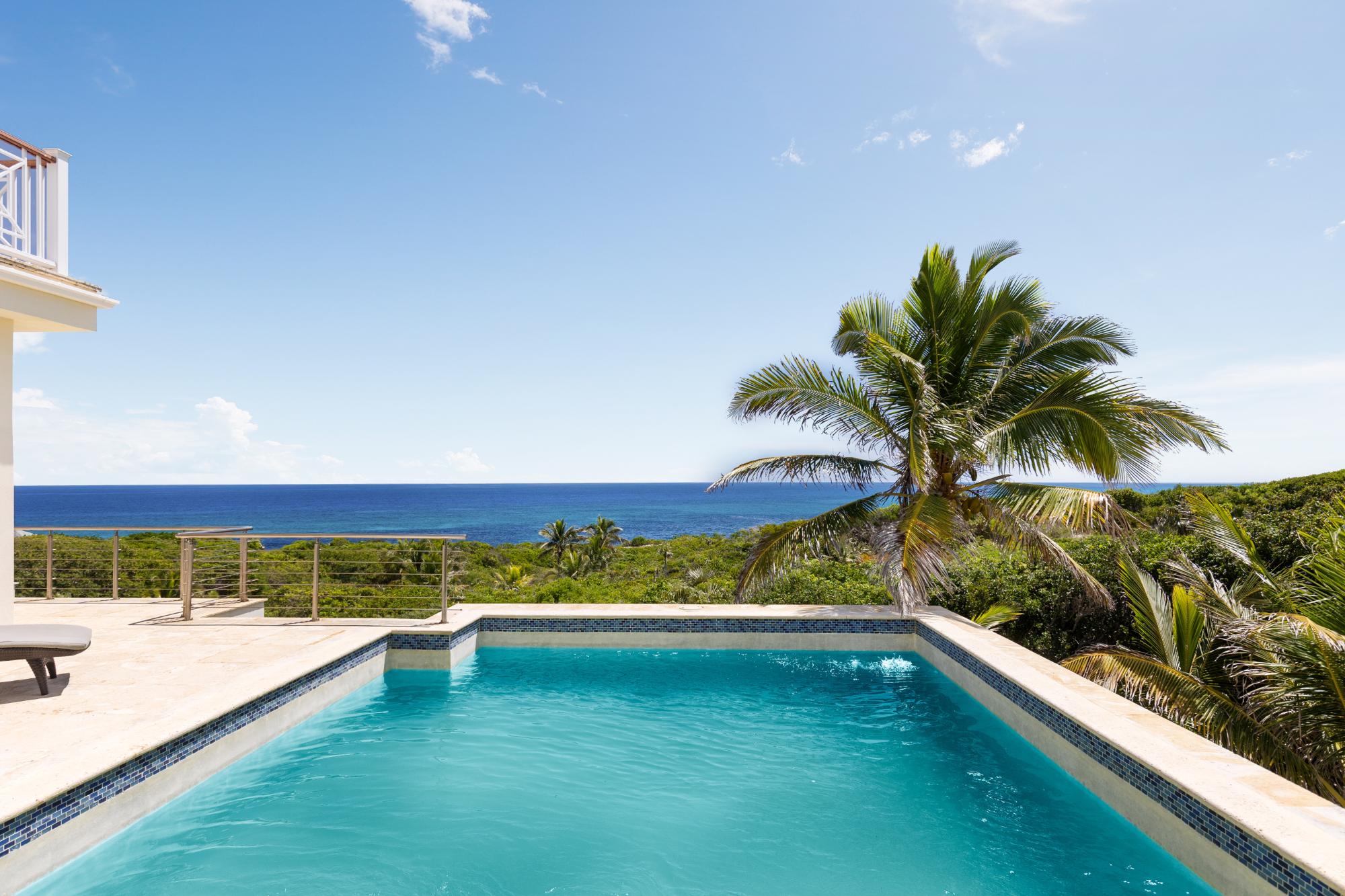 Stella Views, the name of the villa simply best represents the true visual outlook. The property is very close to Stella Maris Resort and Stella Maris airport. The property has recently been built to very modern and high standards. The expansive ground floor has two ensuite bedrooms, one outdoor shower with an Atlantic view. A small bedroom and washroom. The ground floor there is a wide and long corridor, small storage room and a small cloak closet The spiral staircase leads to the first floor and a very large lounge, dining and ktitchen area, and utility room. There are two further bedrooms with a shared bathroom. The lounge opens out to a wonderful terrace area, private pool (not heated but solar blanket is used at times) gym, and separate toilet and changing room. The spiral staircase continues to a small office and large roof terrace and the wonderful lookout turret where the wow word has been mentioned so many times. Additional is a concrete platform intended for solar panels, a 20,000 gallon water storage tank and an external storage room,