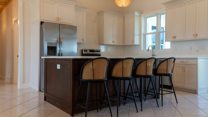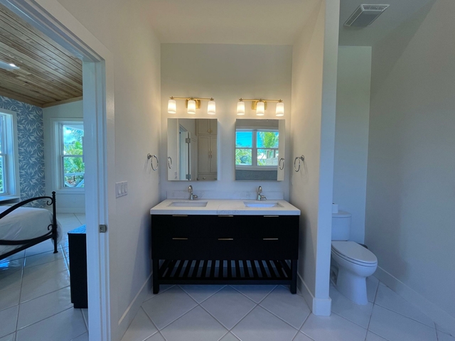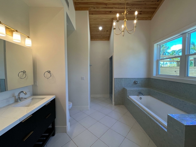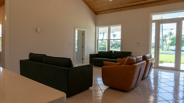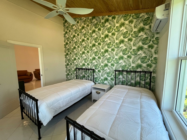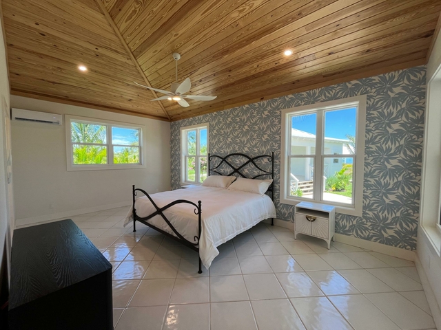 A beautiful renovation of a well-known Treasure Cay home on the corner of Treasure Cay Road and Windward Beach Road with views of Treasure Cay sound. Immaculate landscaping and high ceilings this is one of the more well appointed homes in the community. Signature island themed wallpaper ‘feature’ wall in each bedroom with sea themed tiles in all of the bathrooms, the interior decorator truly understood the concept of the interior reflecting the exterior and what an exterior! Walk across the road and down Sandpiper Way and in 1 minute you are on one of the most breathtaking beaches in the world! Also only a 10 minute walk from Bahama Beach Club where you can take a dip in their swim-up bar pool and enjoy a delicious Bahamian lunch! Excellent rental for a family or company getaway.