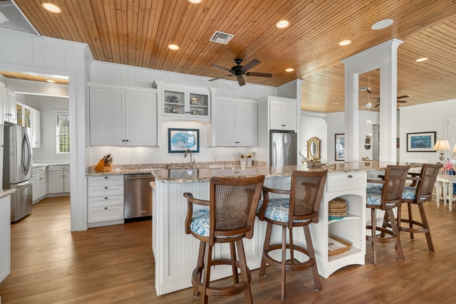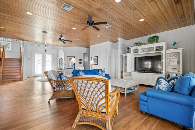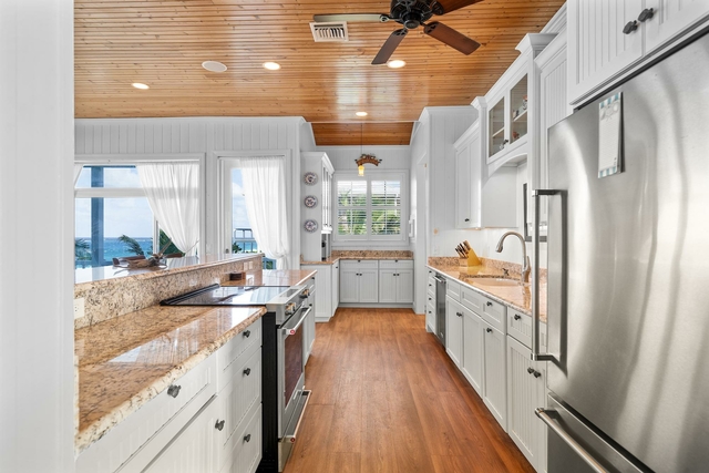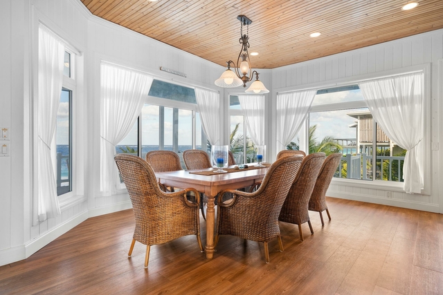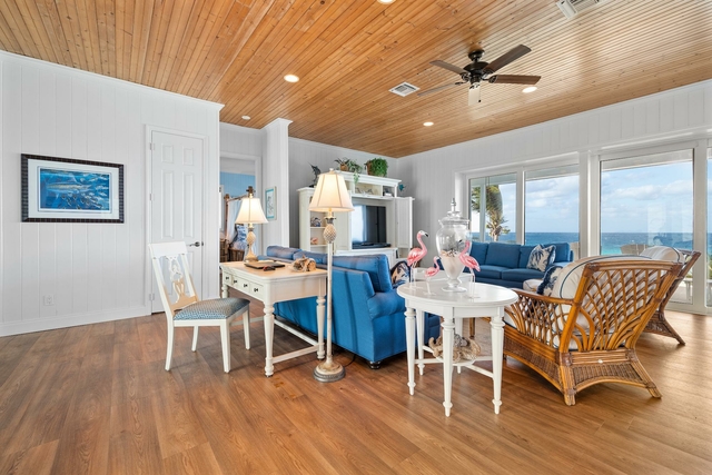Experience coastal living at its finest in this exquisite 4,800 sq. ft. beachfront home, perfectly situated on half an acre with 120 feet of pristine shoreline. With 5 spacious bedrooms, 3 luxurious baths, and 2 half baths, this property is designed for both relaxation and entertaining. Step inside to discover a beautifully furnished interior that blends elegance and comfort. The newly redone gourmet kitchen is a chef’s dream, equipped with high-end appliances and ample counter space. A butler’s pantry offers additional storage, workspace, and a service elevator to the ground floor. Unwind in your private media room, perfect for movie nights or the big game. The property also features a beach gazebo, a dock slip with a boat lift, and a game room overlooking the ocean. An auxiliary standby generator ensures uninterrupted comfort, and two golf carts provide easy access to the lagoon beach park, marina, and airstrip. This incredible beachfront home truly has it all—luxury, comfort, and adventure. Don’t miss your chance to own a piece of paradise!