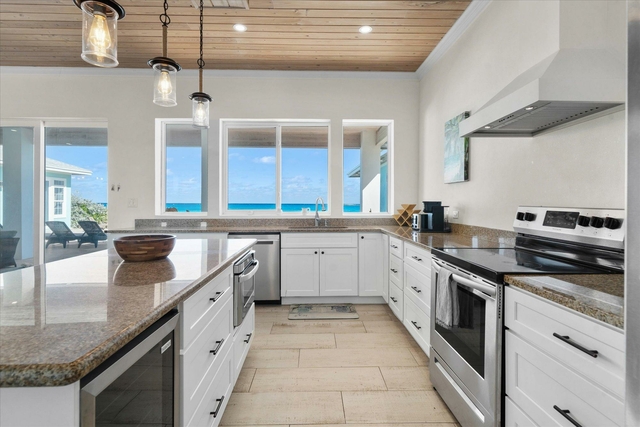 Completed in December 2022, Treasure Cove features 2,800 square feet of living space wit 6 beds and 4.5 baths. The lot is roughly half an acre with 100 feet of beach frontage. There are no restrictions on short term rentals, making for a wonderful vacation home with excellent rental income. Upon entering, you are greeted by a tastefully furnished open living space with high tongue and groove ceilings and a direct ocean view. There are 4 bedrooms in the main house with 2 private guest suites flanked on either side of the pool. The pool deck is 1,150 square feet and features a large pool and hot tub. The kitchen features a large bi-folding window that opens out to the pool deck with barstool seating, enhancing the concept of blending indoor and outdoor living. Other features include grid electricity plus a standby backup generator, city water, hurricane impact doors and windows, tiled floors throughout, stainless steel appliances, recessed lighting, ample parking, and your own private cove beach.
