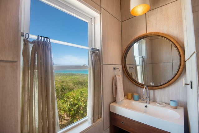 Sky’s Edge is an upscale residence situated on Great Guana Cay in the Abacos, offering modern luxury with 8 bedrooms and 10 bathrooms spanning nearly 4,700 sq. ft. indoors and 800 sq. ft. outdoors. Enjoy sweeping views of the Atlantic Ocean and Sea of Abaco from every angle. Features include a gourmet kitchen, spacious dining area, and custom-designed furniture. The property’s main level opens to a wrap-around terrace and poolside patio, while each bedroom offers a private balcony with water views. The outdoor loggia provides sunrise and sunset vistas, along with multiple seating areas, dining, and a bar. A 36-foot pool and grill area cater to outdoor entertaining. Fully air-conditioned with high-speed internet and a new diesel standby generator, Sky’s Edge promises the ultimate island living experience.