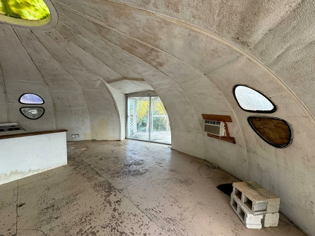 Nestled in the peaceful community of Bahama Sound 2, The Dome House stands as a one-of-a-kind property ideal for those seeking a project. The top floor features an expansive open-concept living area, while the ground floor offers a bedroom, bathroom, and garage.