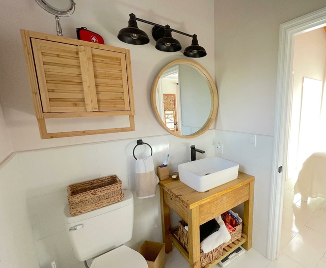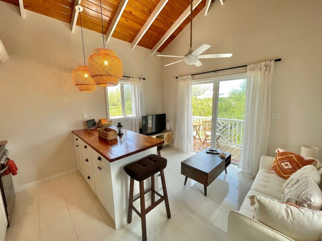 New construction cozy one bedroom cottage with porch and outside shower. Beautiful simple Bahamian interior. Situated on Sunset Beach on the back part of a waterfront lot with private beach. A short walk down a meandering path brings you to the beach. One bedroom with queen bed. Small fold-out couch for additional guest in living room. Each room air conditioned and outfitted with ceiling fans. Full size appliances. Stackable washer and dryer. Covered porch areas for hanging in the hammock or just reading a book and enjoying the outdoors. This is a great opportunity to own a cottage and then build your dream home at your own pace. Large lot with additional room for a spacious island home or more cottages.