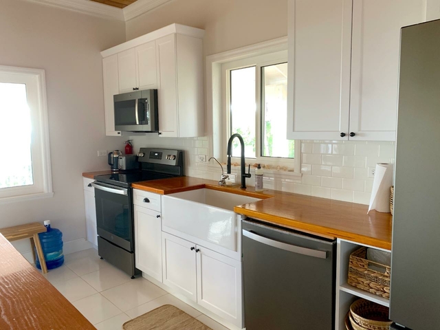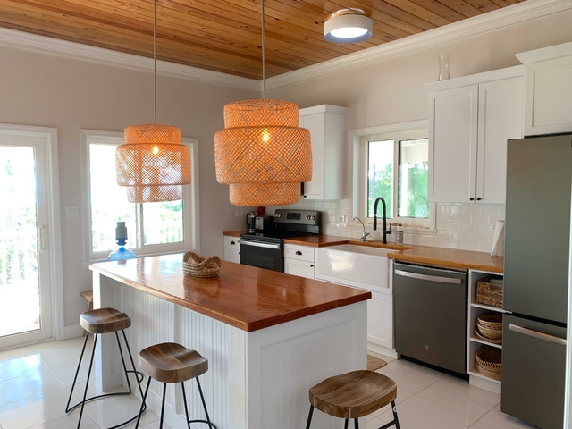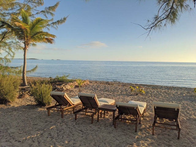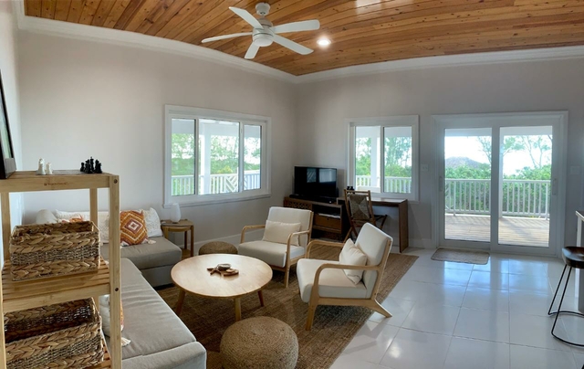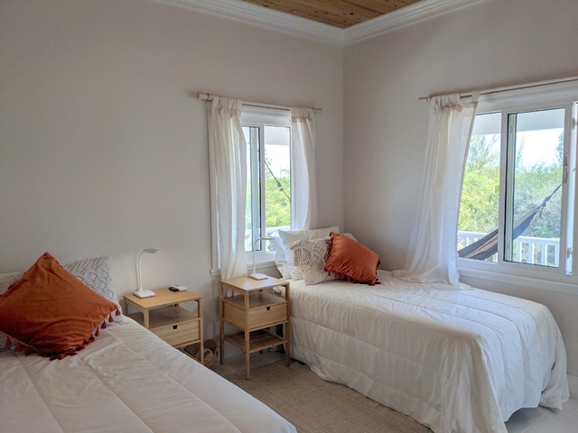 2/2 bedroom sleek, minimalistic interior design beachfront home. Resting beneath the shade of the amazing wrap-around porch just steps away from a stunning beach. The home is made with natural materials and features outdoor living spaces that encourage guests to immerse themselves in nature and feel at one with their surroundings. With a natural oceanfront setting this is most definitely barefoot luxury. Secluded, nature filled Long Island offers an idyllic backdrop for folks to reconnect and relax. The interior design offers a natural, yet elegant feel. Fine wood working and elegant fixtures and a design that gives the true Bahamian feel can be felt throughout. Both the primary bedroom and guest room offer a private entrance giving each party a sense of privacy, allowing for porch side retreats for morning coffee or afternoon naps. The house comes complete with an amazing screened in gazebo and 2 outside showers. Beneath the house are two unfinished extra bedrooms and a half bath as well as a complete utility room with washer and dryer.