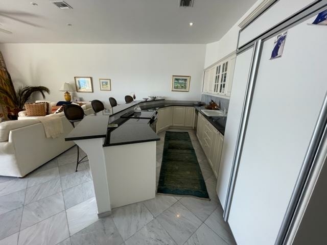 The Oceanview condominium development was built by a European architect and is the finest on the Island. The magnificent walled and gated entrance opens onto a majestic drive lined by stately royal palms which leads to the towering structure that is The Oceanview. Overlooking the dazzling turquoise Bahamian waters the views from each window are breathtaking. This 3 bed 3 and a half bath beachfront condominium is defined by comfort and luxury with marble floors, countertops and the sheer size of the interior. All bedrooms have private balconies and en suite ultra luxury bathrooms with Jacuzzi. Ideally located on the oceanfront a short walk, along on of the most beautiful beaches in the world, to the renown Port Lucaya Marketplace and Marina with its shops, restaurants and night entertainment this condominium epitomizes the most elegant of lifestyles.