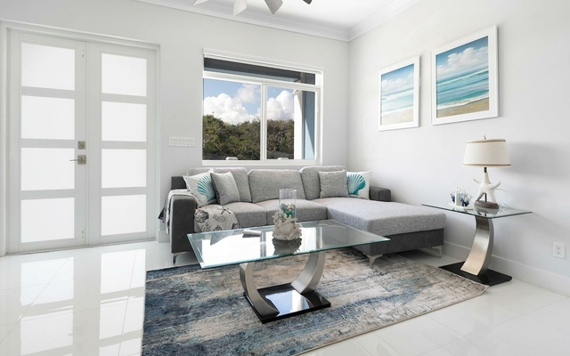 This contemporary-styled two-bedroom condominium is just 5 minutes from the beach. This unit offers 1,150 sq. ft of interior space, each space is topped with modern fittings such as quartz countertops in the kitchen and stylish furniture in the bedrooms and living room. Also included is a private patio, pool, and pool house, ample parking space, and is fully enclosed and secured by security cameras. Tenants are also responsible for the utilities. Call us today to schedule a viewing!