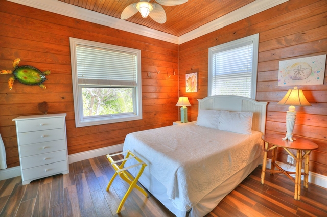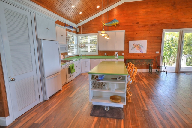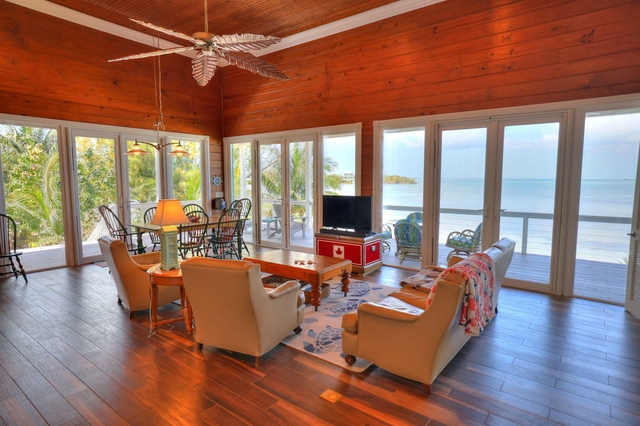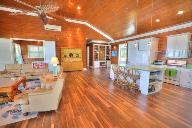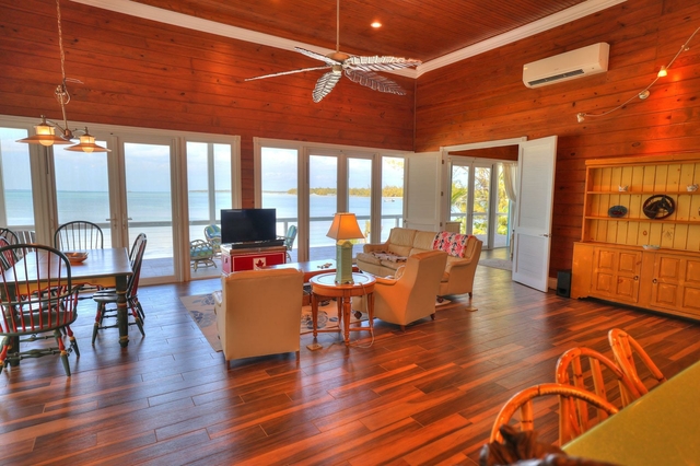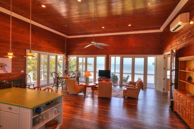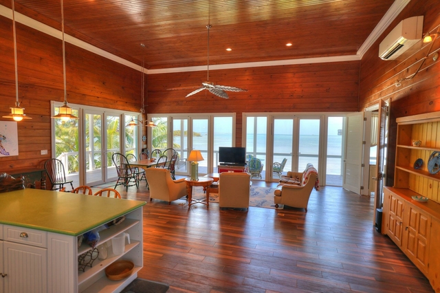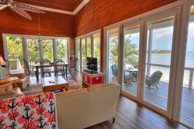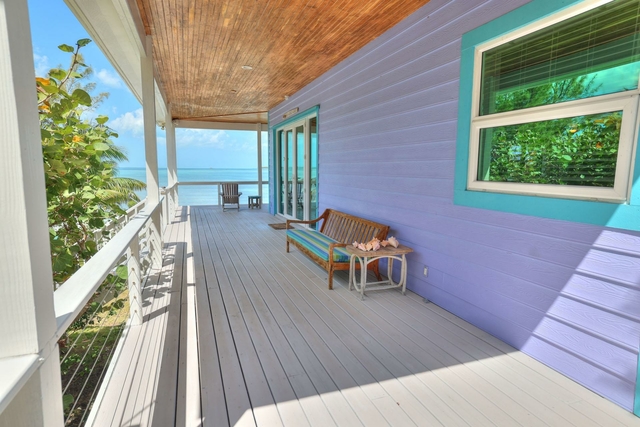 Plum Crazy is a newly renovated and upgraded turn-key 3 bed, 3 bath, and ensuite on two levels. Since the renovations, this house has become one of the most energy-efficient hurricane-proof homes on the market, with closed-cell foam insulation and closed-circuit TV surveillance. Inclusive of a brand new 200 MPH Decra roof. The main level offers +- 1300 sq ft. with vaulted ceilings with LED lighting and mini split AC units throughout to maximize energy efficiency. From the main level, enjoy the 180-degree views of Coco Bay from the kitchen, dining, living room, and master bedroom through the new Solar Band Coral hurricane doors and windows. Adding protection from storms and enhancing efficiency, bringing the breathtaking westerly views in. If you prefer outdoor living space, Plum Crazy offers a +- 1225 sq ft. of newly decked and railed covered wrap-around porch. On the lower level is a 900-square-foot guest bedroom with an ensuite bathroom. Laundry room. Outdoor shower. Also, on the lower level is a garage/ workshop with plenty of storage space.