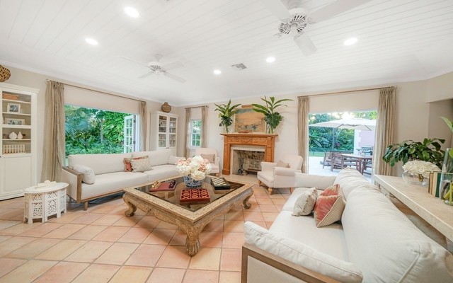 A recently renovated residence with panoramic views across the golf course and less than a three-minute walk to the Lyford Cay Club and all its amenities, including its private long white sand beach. This charming home is tucked away on the quiet cul-de-sac of Arbor Lane within the prestigious gated community of Lyford Cay. As one arrives at the property you are greeted by a lush garden, the centre piece being an ancient and majestic Banyon tree, from which Arbor Lane takes its name). The house itself is of traditional island design, and benefits from a white Bermuda roof. The residence is roughly 5,145 square feet spread over two floors. The main house is one level with five bedrooms and four and a half bathrooms. Plus a studio apartment above the garage. Situated on 0.65 acres of prime real estate, the property has recently undergone a exterior and interior overhaul, the garden also being beautifully re-landscaped, with the end result being a lovingly presented tropical island home.
