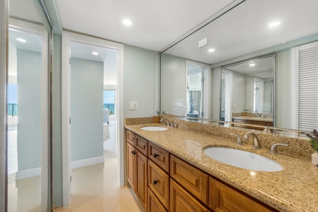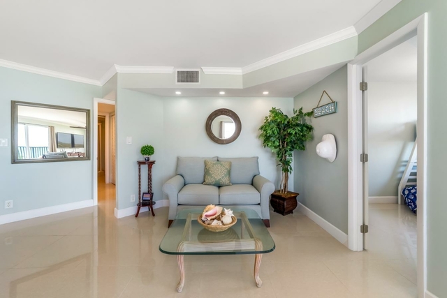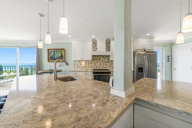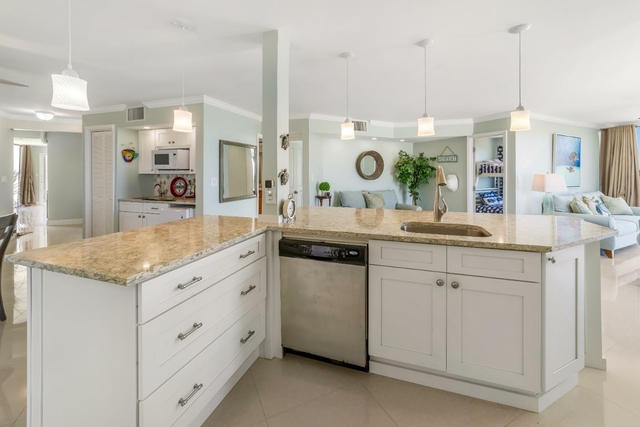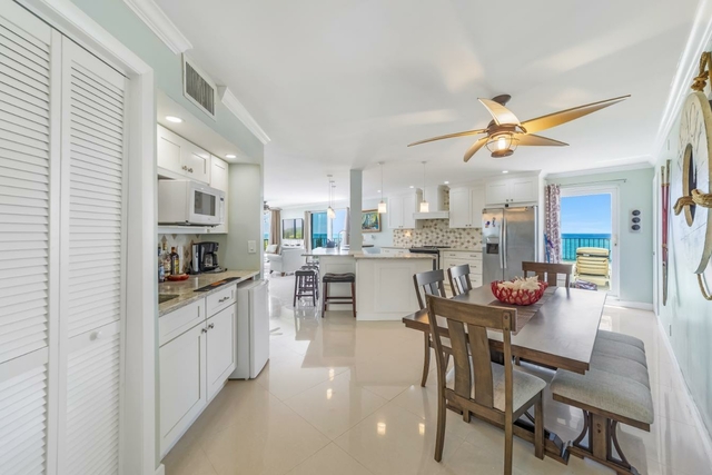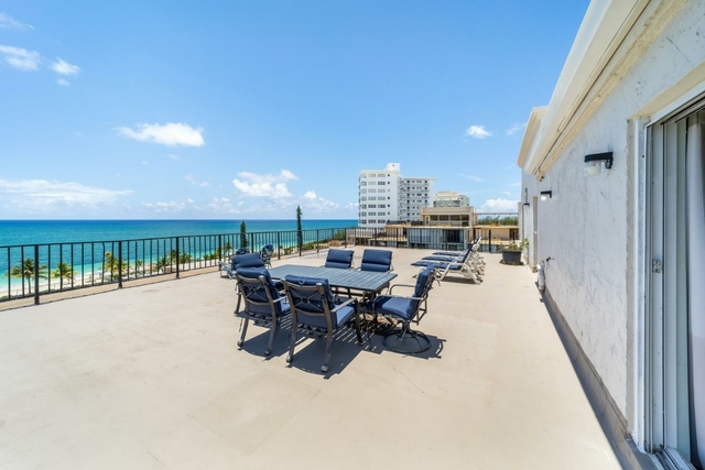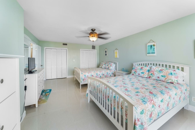 This penthouse condo features a spectacular view from a 1,900 square foot private deck overlooking the beach, pool and ocean. This updated condo totals 2,500 sq. ft. with 4 bedrooms, 2.5 baths, large open plan kitchen, living and dining area. One bedroom could be a home office. The master bedroom has walk in closet and double vanity. The second bedroom has 2 queen beds with floor to ceiling windows. The third bedroom has a queen bed and the 4th bedroom has bunk beds. All bedrooms have ceiling fans and TV. The dining room will seat 6-8 people. This is ideally suited for families. The large kitchen features modern stainless appliances with granite countertops. The open plan encourages easy flow between the kitchen, dining and living room with sliding patio doors leading to the deck. A small niche includes a wet bar and additional seating. The condo is being sold furnished with dishes, linens, and accessories ready to move in or rent out. Call now to schedule a viewing.