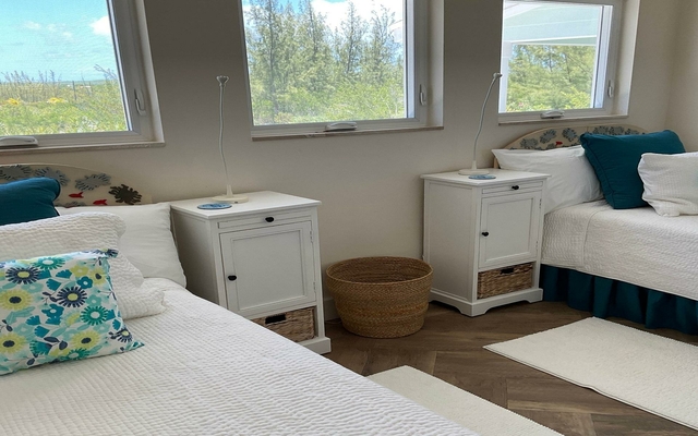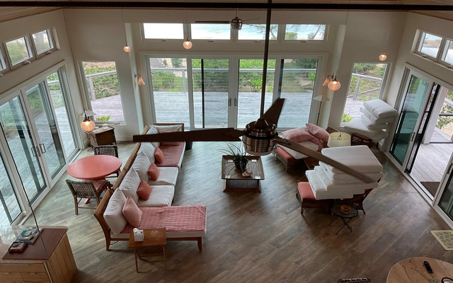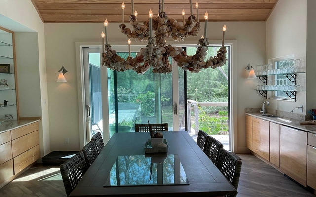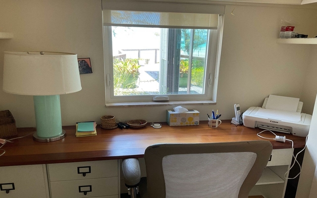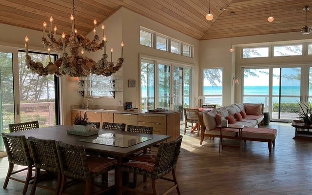 The home’s design ensures spectacular views of the Caribbean Sea from every angle, making every moment spent here a scenic experience. A unique handmade driveway crafted from native rocks adds a charming and rustic touch to the property’s exterior while blending seamlessly with the natural landscape. The Lower level has two comfortable bedrooms and 3 full baths, offering serene retreats with large windows to take in the stunning ocean vistas. A dedicated laundry room equipped with appliances and ample storage space for convenience. An exquisite screened sitting area that allows you to enjoy the fresh sea breeze and panoramic views without interruptions from insects, ideal for both relaxation and social gatherings. A cozy office space with large windows provides beautiful views, making it an inspiring place to work from home. The open living space is characterized by high cathedral ceilings, creating a sense of grandeur and spaciousness. The large windows throughout the home offer stunning views of the beach, allowing natural light to flood the interiors