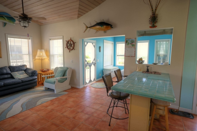 Owning an off-grid home might not be ideal for you, but would this relaxing ocean view make it worth it? #3 Chimney Hill is a charming custom-built home located in the artistic community of Little Harbour. It was built 2009 with pride by the current owners and is now available to purchase for the first time. The home takes full advantage of the mesmerizing views of the Atlantic Ocean and is offered in truly turn-key condition. The floor plan has a main home of 2 bedrooms and 1 bathroom and a detached guest cottage with an extra large bedroom and an attached garage workshop. The colorful, happy home is sold furnished and includes a private deeded dock slip on the harbor. The dock can easily accommodate a vessel up to 35′. For utilities, the home currently has 19,000 gallons of water storage in fiberglass tanks.A 16-panel 24v solar system for electricity with petrol backup genny. The large screened porch is perfect for reading or entertaining, where the ultra-wide screen TV plays nothing but ocean views all day & night. The large guest bedroom has a walk-in closet with a washer/dryer