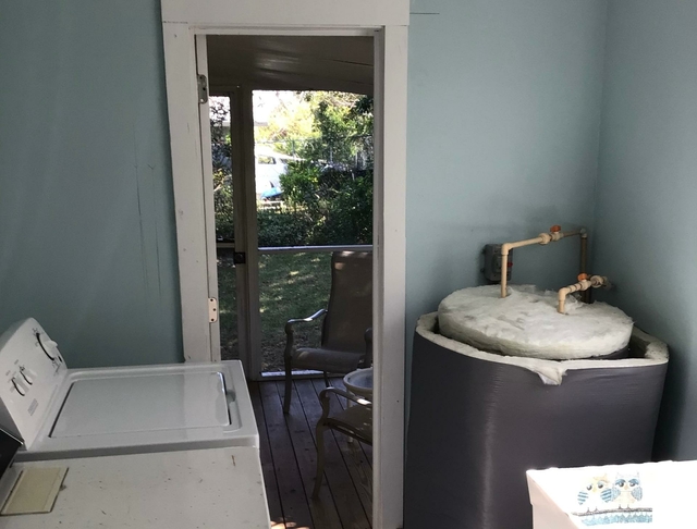 Entering the drive, the Kitty House is on the left, set on a standalone parcel 3B containing 0.1392 acres. It is fenced on 3 sides, bordered by trees and shrubs for privacy, and has a nice yard. It offers 900 square feet under air with 2 large bedrooms, one bath, and an open kitchen, dining, and living room floor plan. The front porch, screened back porch, and the small side porch are covered for the barbecue grill off the utility room with a washer and dryer. Tile floors throughout. The house has three mini split AC units. Coming down the driveway entrance through a white picket fenced gate, about 350 ft. long to the Dog House, The property is currently accessed through Lots 3C 0.2507 acre, and 3D 0.5175 acre is heavily wooded on side property lines, with lots of privacy. The total combined acres of all three parcels is 0.9073 acres. The property offers 110.16′ of Black Sound waterfront property. The backyard has a small fenced area that is gated for pets. It has a large front porch for entertaining and a beautiful view of Black Sound and sunsets.