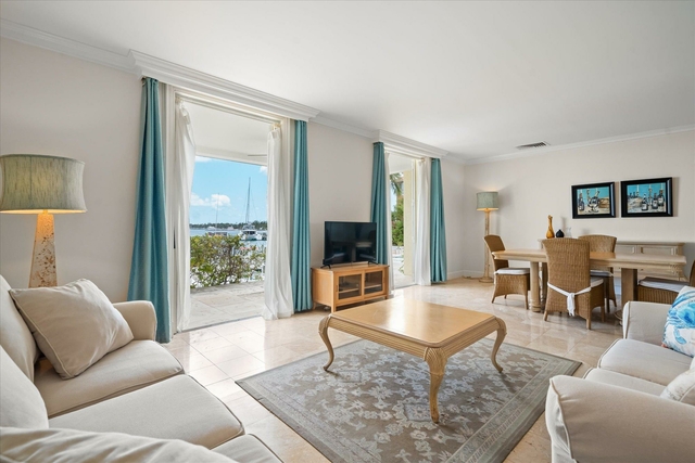 This spacious 2-bedroom, 2.5-bathroom ground-floor residence at Noble House offers approximately 1,500 sq. ft. of comfortable living space in an exclusive gated, waterfront community on Paradise Island. The condo includes a private dock slip, providing direct access to Nassau Harbour—ideal for boaters. Highlights include: Large patio with harbour views Kitchen with granite countertops, breakfast nook, dishwasher, and in-unit washer/dryer Bright, open layout with tiled floors and central A/C Two parking spaces (one covered) Standby generator for added peace of mind Lush garden setting with a community pool Gated entry for security and privacy Located within walking distance of Atlantis, restaurants, shops, and the beach, Noble House is a boutique building of just seven residences, offering an unmatched combination of privacy, comfort, and an island lifestyle.