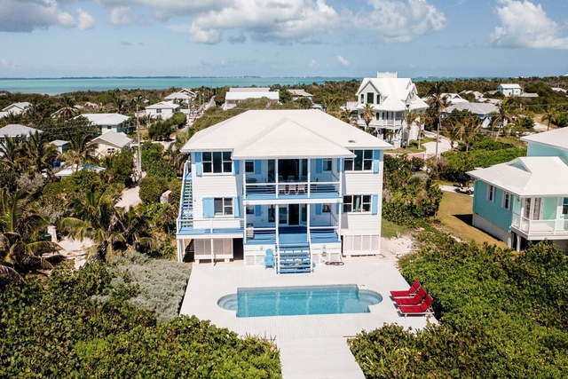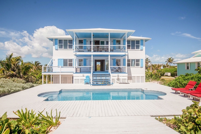 Southern Cross is an exceptional 3,000 sq. ft. oceanfront home with stunning views, a beachside pool, and direct beach access. This 6-bedroom, 6-bathroom property features spacious en-suite bedrooms and inviting indoor-outdoor living. The first floor offers 4 bedrooms, a shared living area, and French doors leading to a large deck and 35-foot pool. Enjoy the outdoor shower, boardwalk to the ocean, and 100 feet of beachfront with dunes. A dune-top deck is perfect for relaxing with a book or evening cocktails. Upstairs are 2 additional bedrooms, a full kitchen, dining for 12, living room, and a covered porch overlooking the Atlantic. The kitchen boasts White Terrazzo counters, custom cabinetry, a gas stove, dishwasher, BBQ, and water filtration system. The home includes furnishings, generator, two 10,000-gallon cisterns, storage shed, and a strong rental history. Ideally located on Elbow Cay, it’s just minutes by golf cart to Tahiti Beach, Sea Spray Marina, and Hope Town.