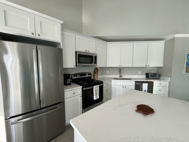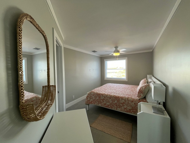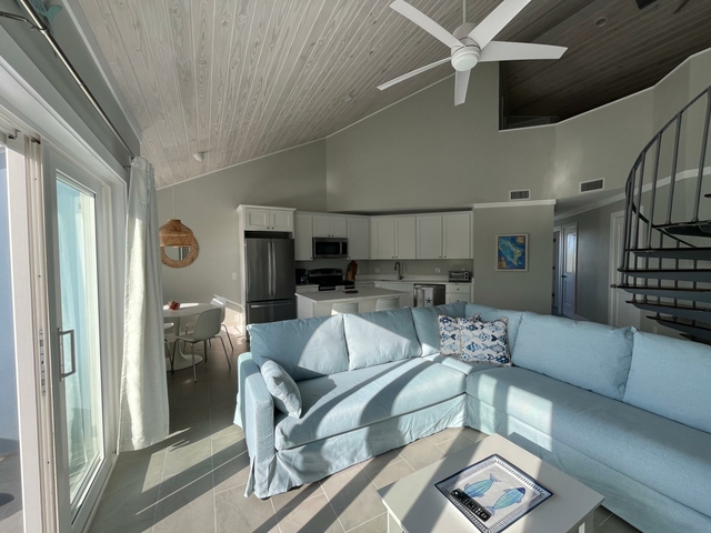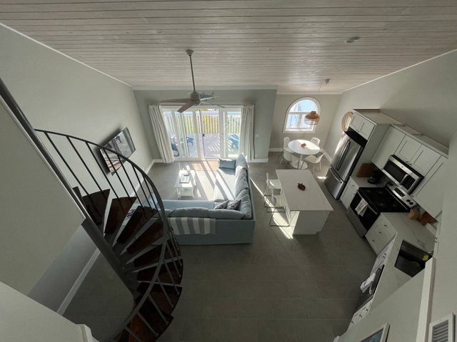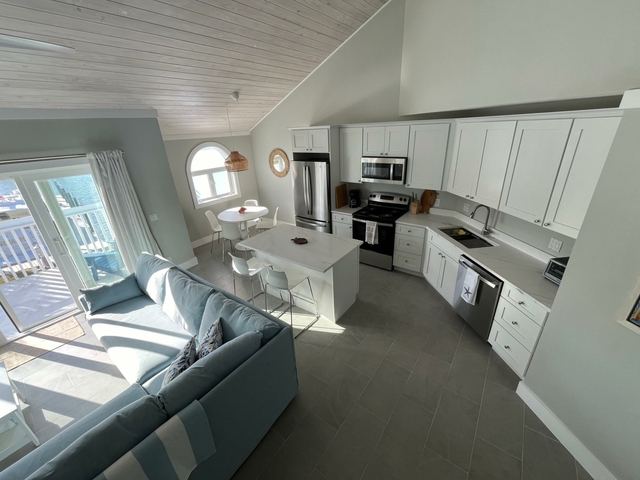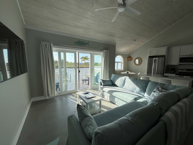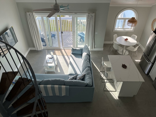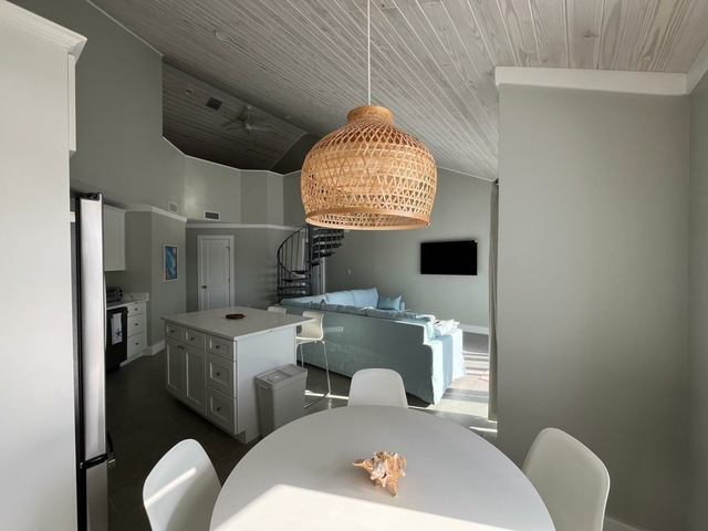 Blue Marlin is a quiet development overlooking Brigantine Bay in beautiful Treasure Cay. It comes with its own dock slip for up to a 30′ boat. This second floor condo has been newly furnished with neutral tones and has a spacious kitchen/living area with dining nook. Its spacious balcony offers views of the bay and your boat. Two of the three bathrooms are en-suite and all have walk-in showers. The third bedroom and bathroom occupy the loft which is accessed via a spiral staircase. This development has one of the larger pools in Treasure Cay and the pool area and gardens are maintained to a high standard. Sundowners while lounging on the poolside adirondacks overlooking Brigantine Bay are a must! Treasure Cay beach is accessed via a public greenway a 5 minute walk away. Larger vessels may be accommodated so please do make further enquiries. Long term leases are preferred.