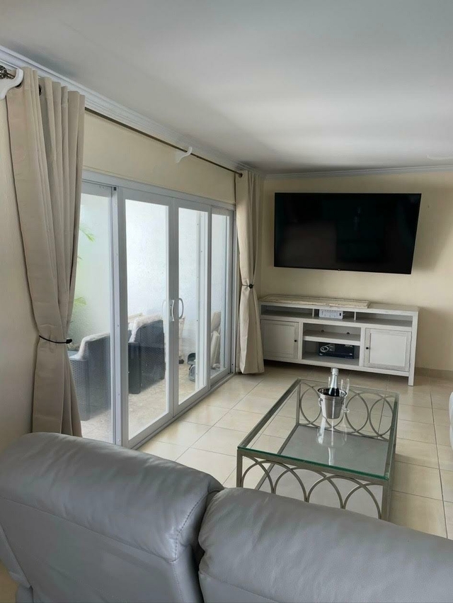 3 bed, 2 1/2 bath, washer dryer, ocean front, back patio, furnished, TV, water cooler, fridge, stove, microwave, and linen.