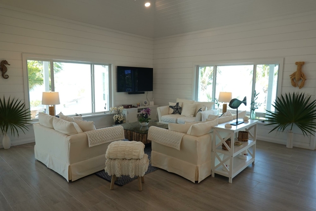 Discover Serenity, an exceptional waterfront estate set on a private peninsula surrounded by the crystal clear Abaco waters. This thoughtfully designed home offers panoramic ocean views from every room and an unparalleled sense of privacy and tranquility. Ideal for boating and diving enthusiasts, the property features a rare 60 foot private dock with direct access to the sea. A stunning glass enclosed gazebo sits over the water – perfect for year round relaxation, entertaining or enjoying breathtaking sunsets. The residence is divided into two wings for optimal privacy. One wing hosts two en-suite guest bedrooms and a third bedroom with a shared bathroom; the other includes an expansive open plan living/dining area and a serene primary suite with a spa style bath and large dressing room. Multiple outdoor living areas, a private pool and tranquil gazebos offer numerous spots to unwind. Serenity is more than a home – it’s a lifestyle defined by natural beauty, peace and effortless access to the best of island living.