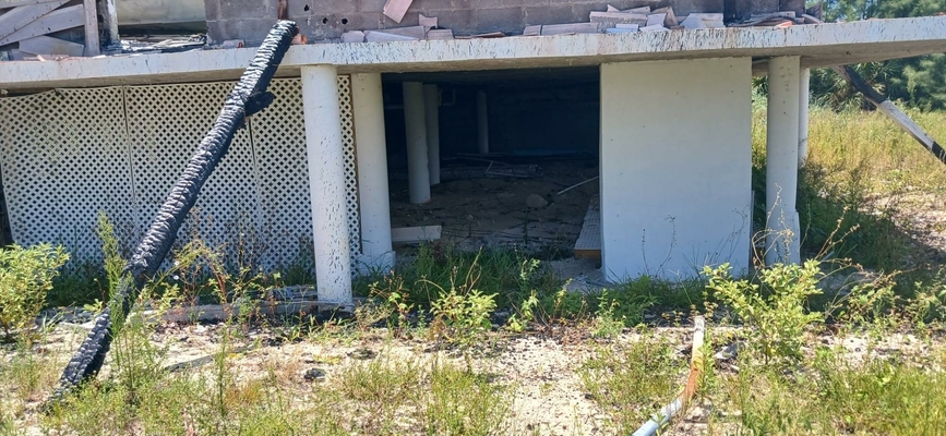 This property offers a rare opportunity to rebuild your dream beachfront home—or create a unique business venture—in the peaceful and scenic East End of Grand Bahama. Once a beautifully designed residence, this home sustained significant damage during Hurricane Dorian. What remains is the structural shell—four reinforced concrete walls and the foundation—sitting on 14-foot pilings. All windows, doors, and the roof have been lost. Set on a private road with breathtaking views of the beach, the property spans 2 acres and features open zoning, allowing for both residential and commercial development possibilities. The original home measured 2,400 square feet. While the interior has been completely compromised, the solid concrete structure and strong foundation provide an excellent base for restoration or redevelopment. With open zoning, this property is ideal for a private residence, vacation rental, or a business venture such as an eco-retreat or beachside rental cottages. Just 55 miles from the U.S. and 20 minutes from Freeport, this is a rare opportunity to own and rebuild.