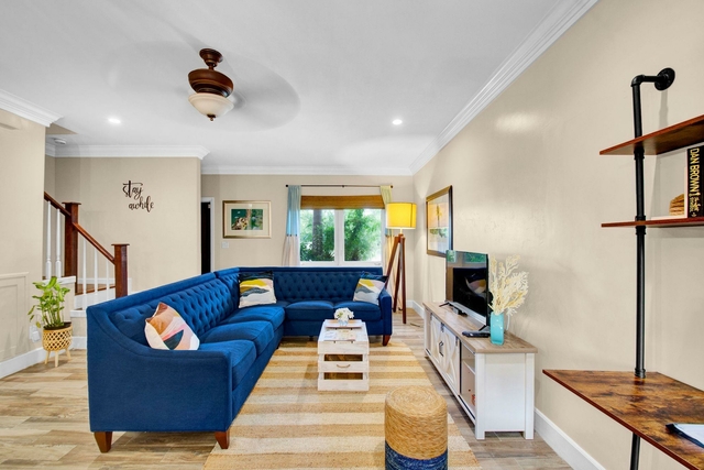 This beautifully furnished two-bedroom, two-and-a-half-bath townhouse is located in the quiet, secure neighborhood of Love Estates in Nassau, Bahamas. Offering approximately 1,200 square feet of comfortable living space, the home is ideal for professionals or small families seeking style, convenience, and peace of mind. Inside, you’ll find an open-concept living and dining area filled with natural light, a modern kitchen with stainless steel appliances and ample cabinetry, and two spacious bedrooms with ensuite baths and tasteful finishes. The primary bathroom includes a soaking tub and walk-in shower, and there’s a separate powder room for guests. A washer and dryer are included for your convenience. Situated near the airport and the upscale Old Fort Bay area, this unit is close to beaches, shops, dining, and walking trails. Love Estates is a secure, gated community that offers the perfect blend of privacy and accessibility.