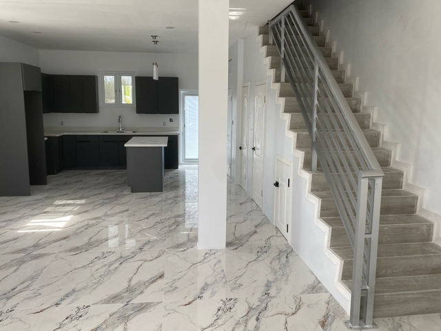 This beautifully crafted 1,386 sq.ft. A corner townhouse in a triplex has 2 bedrooms and 2.5 bathrooms. It features 12-foot ceilings, 8-foot doors, I beams for floor support, and 2×8 roof rafters for extra strength, plus it has a balcony with a view over the pond. The open plan living/dining and kitchen has porcelain tile, quartz counter tops and high-end cabinetry. Upstairs, both bedrooms are en-suite with carpet. The central air-conditioner is 17 Seer, so it is highly energy efficient, and it has three zones so you can choose which areas you want to cool. Outside, there are two parking spaces and two enclosed spaces for garbage cans. Via Della Rosa is a new development in Coral Harbour with 24 hour security, a large pond at the entrance, a playground and they are soon going to build a community pool. The Coral Harbour beach is a 2-minute drive away. Come and view this special townhome!