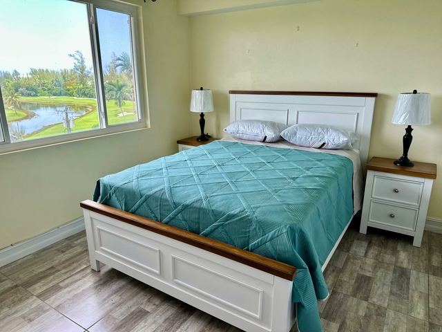 Charming 3 bedroom, 3.5 bathroom townhouse in the heart of the west overlooking the wonderful 18-hole golf course, Goldwynn resort, and partial ocean views. Fully furnished, this unit features 3 floors, laundry area, large windows and a fantastic screened in balcony with great views. Enjoy comfort and quiet living in this executive unit, which is also gated for added security. Also featured is a lovely swimming pool and additional laundry services.
