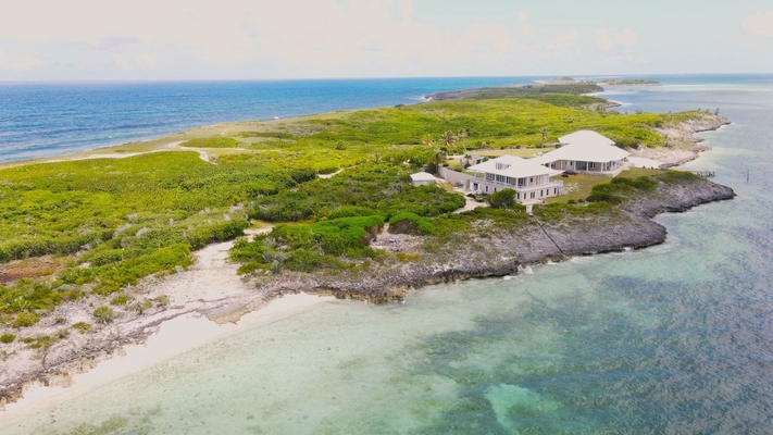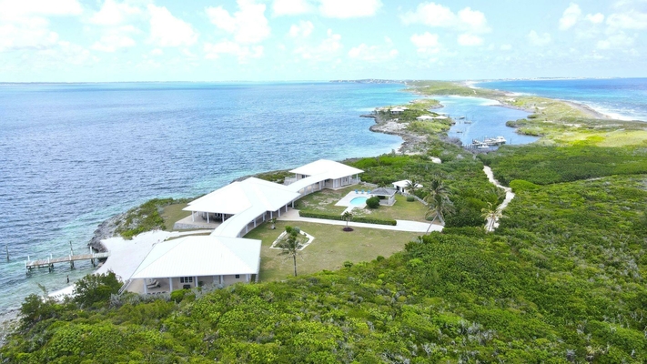 Welcome to Tilloo Pond Estate, a breathtaking oasis nestled on the stunning Tilloo Cay in Abaco, Bahamas. This remarkable property boasts 6,000 square feet of luxury, featuring 5 bedrooms and 6 bathrooms, and is situated on a sprawling 14-acre sea-to-sea parcel, in fact touching three bodies of water: the tranquil Tilloo Pond, the Sea of Abaco, and the Atlantic Ocean. The property is comprised of three villas connected by a covered breezeway: a Main Villa, a Master Suite Villa, and a Guest Villa. Throughout, there are two master suites, two guest rooms, a 4-twin bed loft, with 5.5 bathrooms, two living rooms, a gourmet kitchen, plus caretaker quarters. No expense has been spared on the decor and furnishing of this beautiful home with top of line fittings and finishings. Tilloo Pond is offered fully equipped and furnished including original artworks. The property features a swimming pool, a small private beach, as well as two private docks, one in the sheltered harbor, and one on the Sea of Abaco.