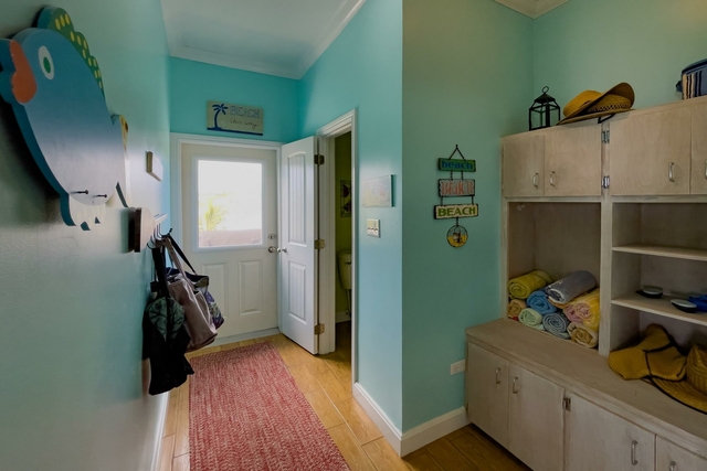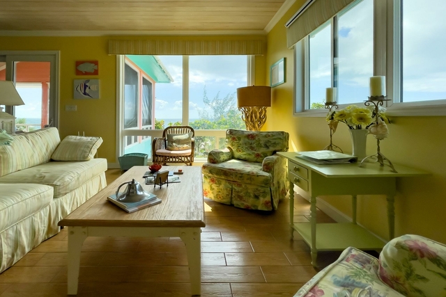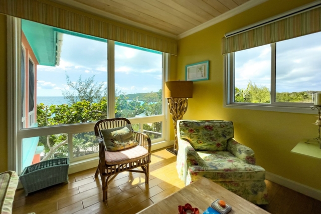 Welcome to Savannah Sunset, a stunning oceanfront home with a pool on the tranquil shores of Little Bay. Spanning two acres, this property offers ample space for additional cottages or a second residence. The great room boasts vibrant colors and breathtaking ocean views through expansive floor-to-ceiling windows. The open layout flows into a cheerful kitchen, spacious pantry, dining area, and a screened porch—ideal for relaxation, where you can enjoy the refreshing breezes and scenic vistas. The main level features two large bedrooms with king-sized beds and en-suite bathrooms. One bedroom overlooks the ocean, while the other offers views of the lush garden. Step outside to the boardwalk leading to the pool. The lower level is perfect for entertainment, with a cozy family room, plush seating, a large TV, and a wide selection of games, books, and activities. A bright bedroom accommodating up to six people is also located here, with a queen bed, twin beds, and trundles.