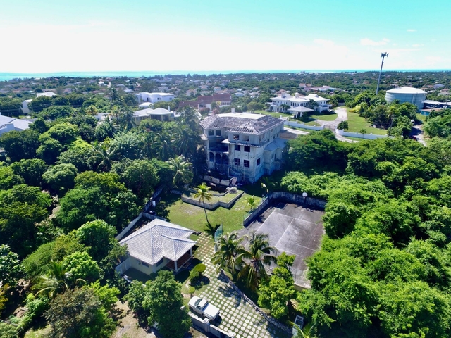 Welcome to a prime opportunity in the desirable Winton Heights community! This expansive 38,327 sq. ft. property includes two lots (14 and 2) and a 17,320 sq. ft. unfinished four-story main house featuring 7 bedrooms, 7.5 bathrooms, recreational areas, a wine cellar, and a two-car garage. Additional highlights include a 60-gallon water tank, a basketball court that can double as a tennis court, and a foundation ready for a pool. A 1,100 sq. ft. two-bedroom cottage with its own generator adds flexibility. Enjoy stunning ocean views of Rose Island and Paradise Island from the upper floors. Conveniently located near grocery stores, pharmacies, and banks, this property offers luxurious living with everyday conveniences close by. Don’t miss the chance to turn this unfurnished masterpiece into your dream home!