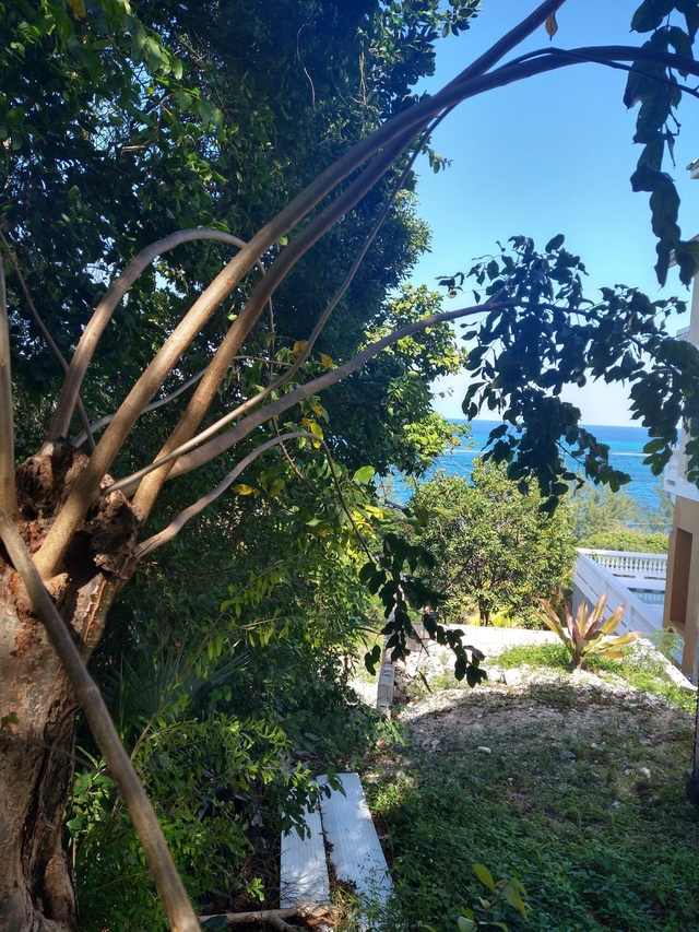 This lot is elevated on the ridge of Tropical Gardens extension, on Gambier Court. One of the few sea view lots left in the west. The view from the ridge is a gorgeous unobstructed view of the turquoise waters in the western area. This lot is located beside the Stones Throw Away Hotel. The driveway is already cut so the lot is ready to start building. At the top of driveway is a level area , then the lot rises to the ridge, where your home will have similar view of the hotel. Walk a few minutes down the hill to a beautiful white sand beach.