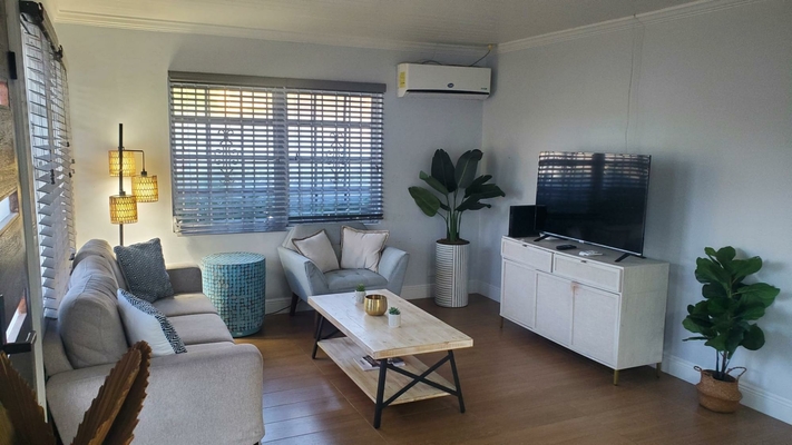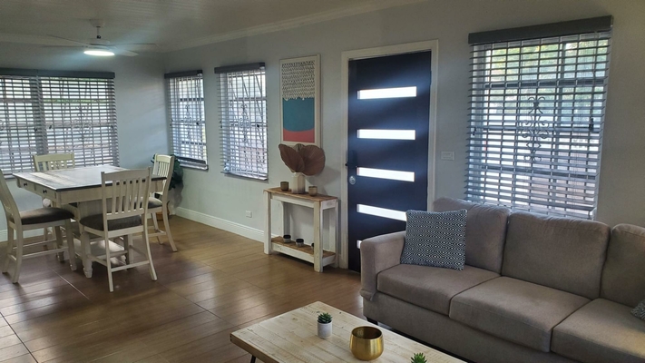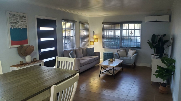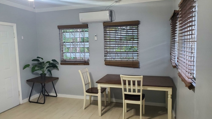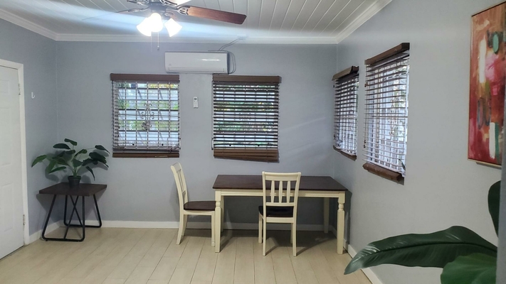 This unique rental is perfect for a family or company seeking a home that allows everyone to stay connected while enjoying their own space. Offering two separate living units, this property is designed to provide comfort and flexibility. The mostly furnished, front unit features 2 beds, 2 baths. It has an open-concept living and dining area, complemented by a pass-through window to the kitchen, which includes dishware, a stovetop(no oven) and an apartment-sized refrigerator. Laminate flooring flows throughout, with carpet in the bedrooms. Enjoy the convenience of split A/C units, a separate laundry area, and parking for two vehicles. The rear unit, a 2-bed, 1-bath space, is partially furnished and equipped with beds, a dining table, stove, and refrigerator, offering additional versatility for family, guests, or team members. Nestled in a prime location, this home is just 5 minutes from Montague Beach and 10 minutes from Paradise Island. It’s close to everyday conveniences and schools like Queen’s College, Kingsway Academy and LW Young Jr. High. Water is included in the rent. No pets.