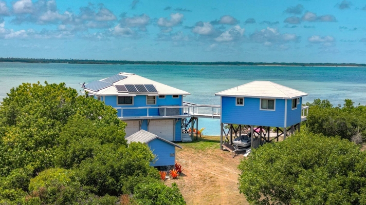 With mesmerizing views of The Bight of Old Robinson, this elevated cozy 2b/2b, pod-style waterfront home in the friendly community of Little Harbour is on the market for the first time ever. Built in 2005 and then expanded in 2015, the estate blends comfort, functionality, and self-sufficiency in a spectacular island setting. 160 feet of shoreline, a small boat ramp & small boat basin at the back door, perfect for outdoor adventures of all kinds. A relaxing paddle or an exciting fly fish hunt to be had where this home overlooks the East Abaco Creeks National park – a haven for birdwatching, marine life, and peaceful paddling adventures. The main part of the home has 1 bdrm & 1 bthrm and comfy screened porch overlooking the sea. The guest bdrm pod has a full bathroom and a built-in kitchenette/wet bar. Offering 1,032 SF of air-conditioned living space over a 700 SF garage and workshop, including furniture and appliances. Construction: concrete slab ground floor, wood frame walls, asphalt roof. 20,000 gallons water storage, 18kw diesel generator, 18 PV panels, 48v Lithium batteries.