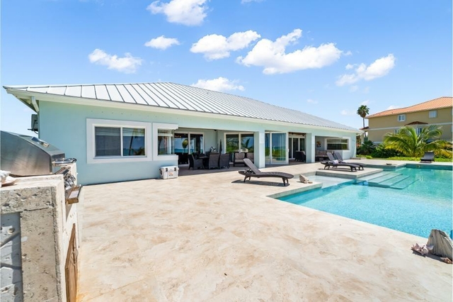 GoldenEye Estates – Two Distinctive Properties in Freeport GoldenEye Estates offers a rare opportunity to own two exceptional homes directly opposite one another, combining beachfront tranquility with canal-front convenience. Together, GoldenEye Villa and Palm create a private estate spanning prime waterfront on both the beach and canal. GoldenEye Villa (Beachfront) Set on 3 acres of pristine beachfront, GoldenEye Villa is designed for relaxed island living. The residence features: •8 total bedrooms, including 3 ensuite and a detached ensuite guest room •Sleeping arrangements: 2 king beds, 1 queen, 2 twins, and 2 full-size beds in the annex •Expansive covered patios for outdoor dining and lounging •Infinity-edge pool overlooking the ocean •Direct beach access steps away from the villa Palm (Canal-Front) Directly opposite GoldenEye Villa, Palm is a newly built 3-bedroom, 2.5-bath canal property. Ideal for boating enthusiasts, it includes: •A brand-new dock accommodating vessels up to 65 feet •5-foot draft at low tide for smooth access •Less than one mile from Knowles Marina