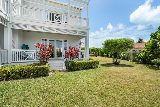 Corner unit townhome with the largest garden in Starfish Isle, Palm Cay. Ideally situated in the resort-style gated beachfront community, this 3-bedroom, 2.5-bathroom income producing vacation rental property offers ample space for the addition of a private pool and pergola covered parking. Positioned only 150 feet from the beach, this end-unit townhome is offered turnkey, complete with modern furnishings and décor. The spacious ground floor embraces an open-plan concept, seamlessly flowing from dining to kitchen to sitting and finally, to a porch with a fruit-bearing garden beyond. Stairs leading to the second floor take you to three bedrooms: two ocean-facing queens and a garden-facing master king en-suite with double-sink, zero entry shower and a spacious pergola covered porch. On the top floor is a bonus room, this room offers the possibility of a fourth bedroom, media room or den. Boasting 5,054 sq ft of private green space.