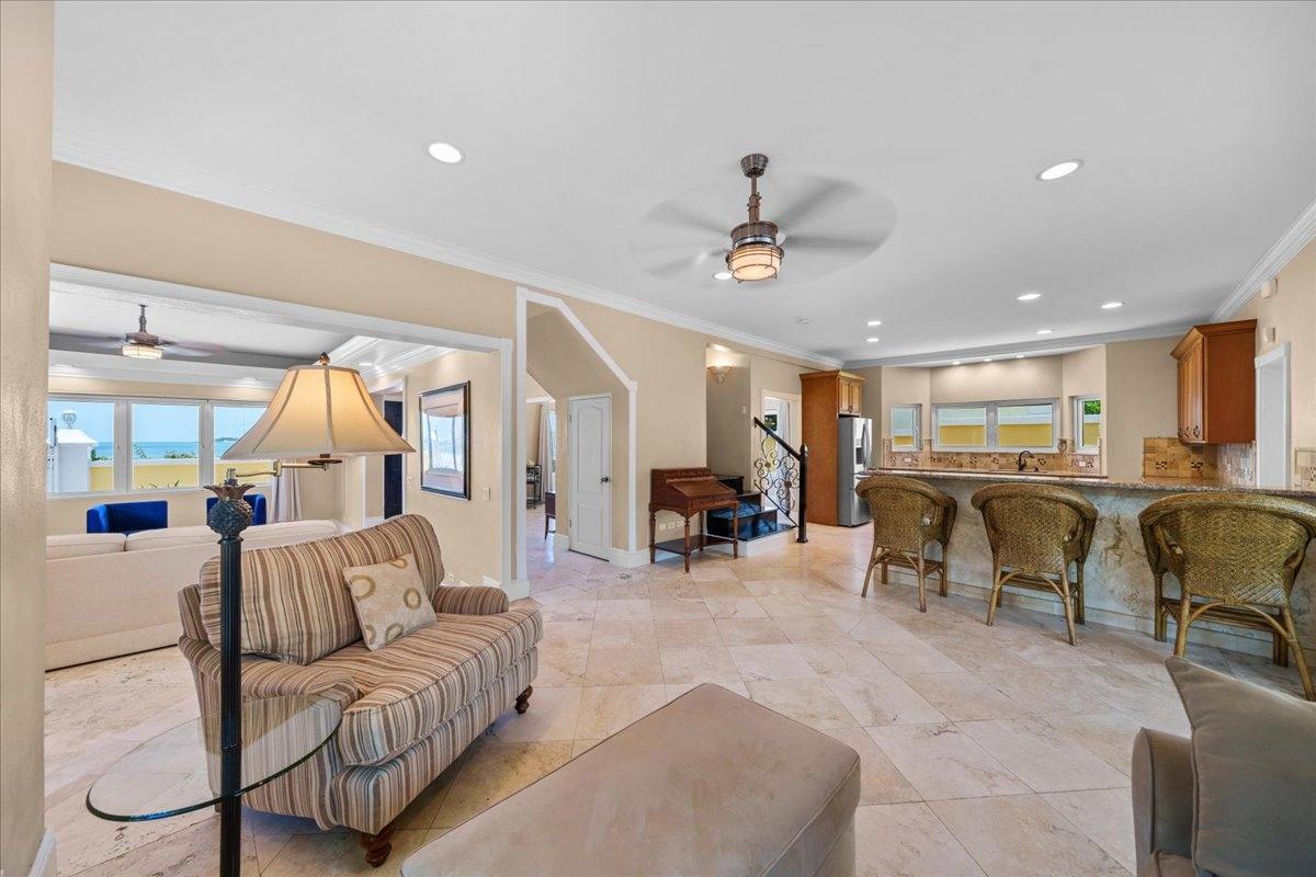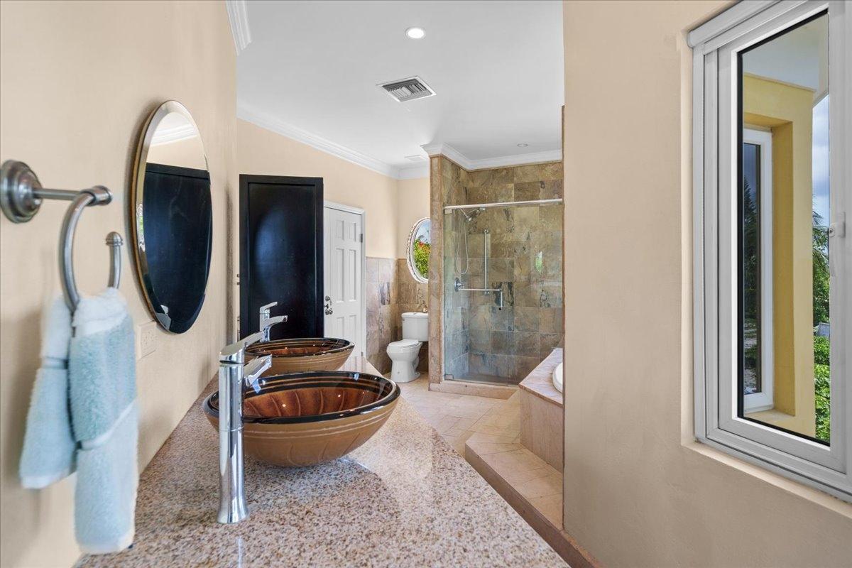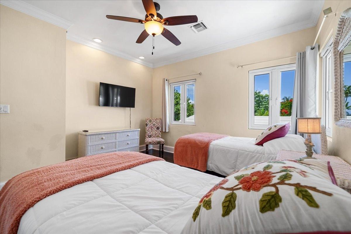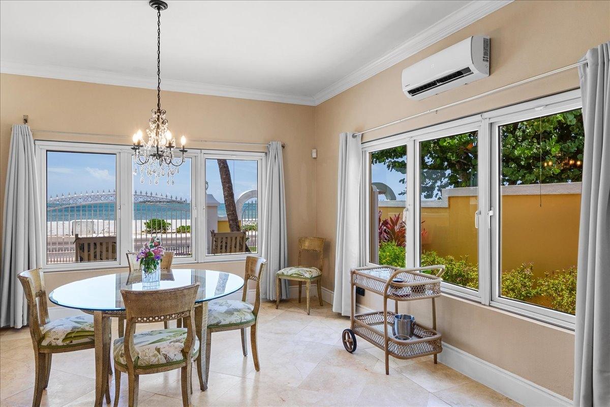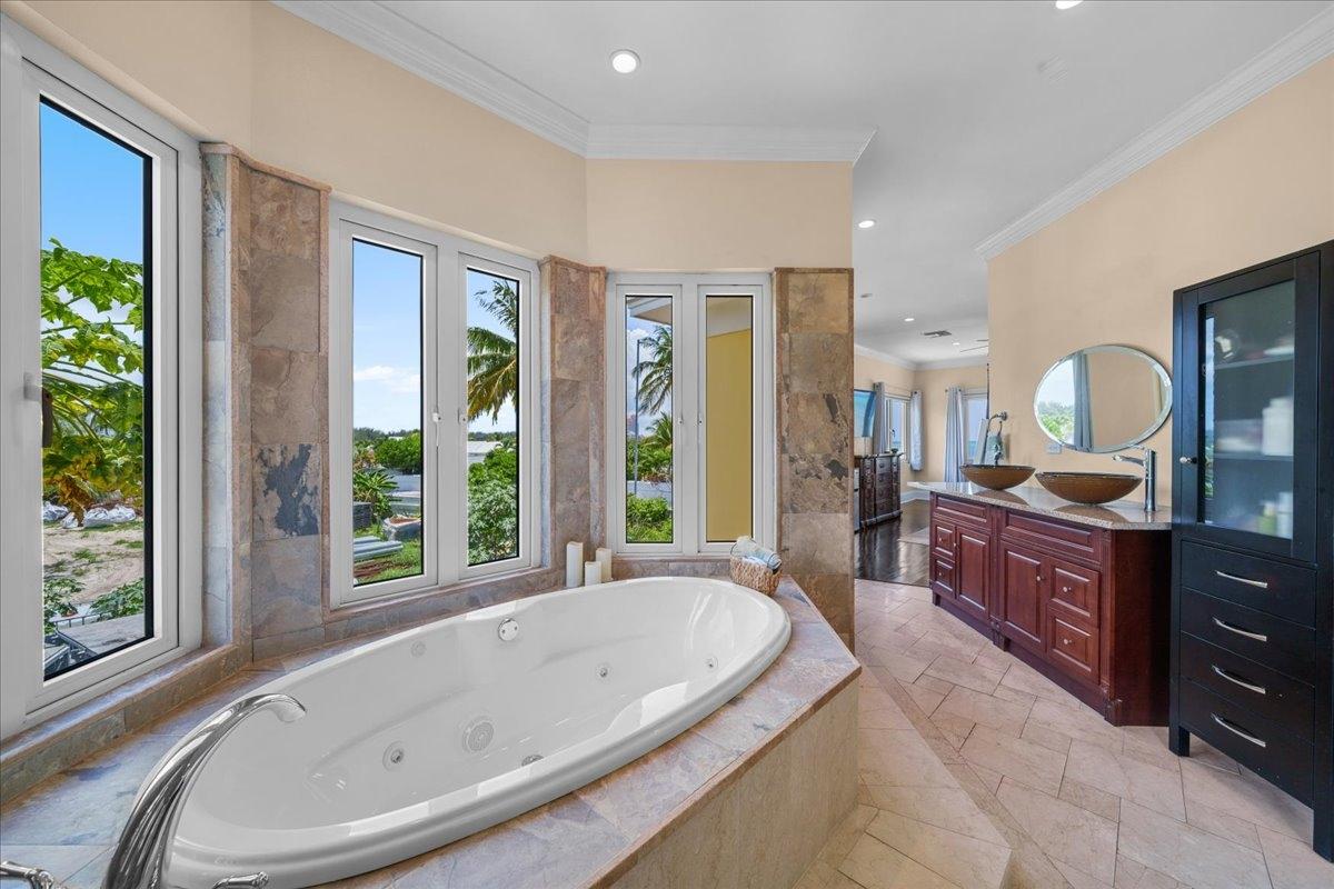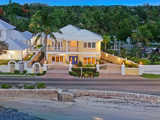 Welcome to Villa Sundance — a radiant jewel along Nassau’s storied coastline, where turquoise waters meet timeless design. Tucked just minutes from the vibrant energy of Cable Beach, this turnkey waterfront escape is a rare blend of seclusion, sophistication, and ease — with no HOA strings attached. Framed by graceful gates and swaying palms, the villa’s sunny façade and lush, mature gardens set the tone for what lies within. Inside, a palette of travertine and bamboo floors, curated furnishings, and hurricane-rated windows and doors create a mood that’s equal parts island soul and architectural integrity. The kitchen is classic and inviting — granite counters, solid wood cabinetry, and stainless steel appliances — while open-concept living spaces flow seamlessly to the outdoors. Upstairs, the primary suite commands the view, its private balcony offering uninterrupted sunsets over Goodman’s Bay. Inquire today and step into your own slice of seaside sophistication.