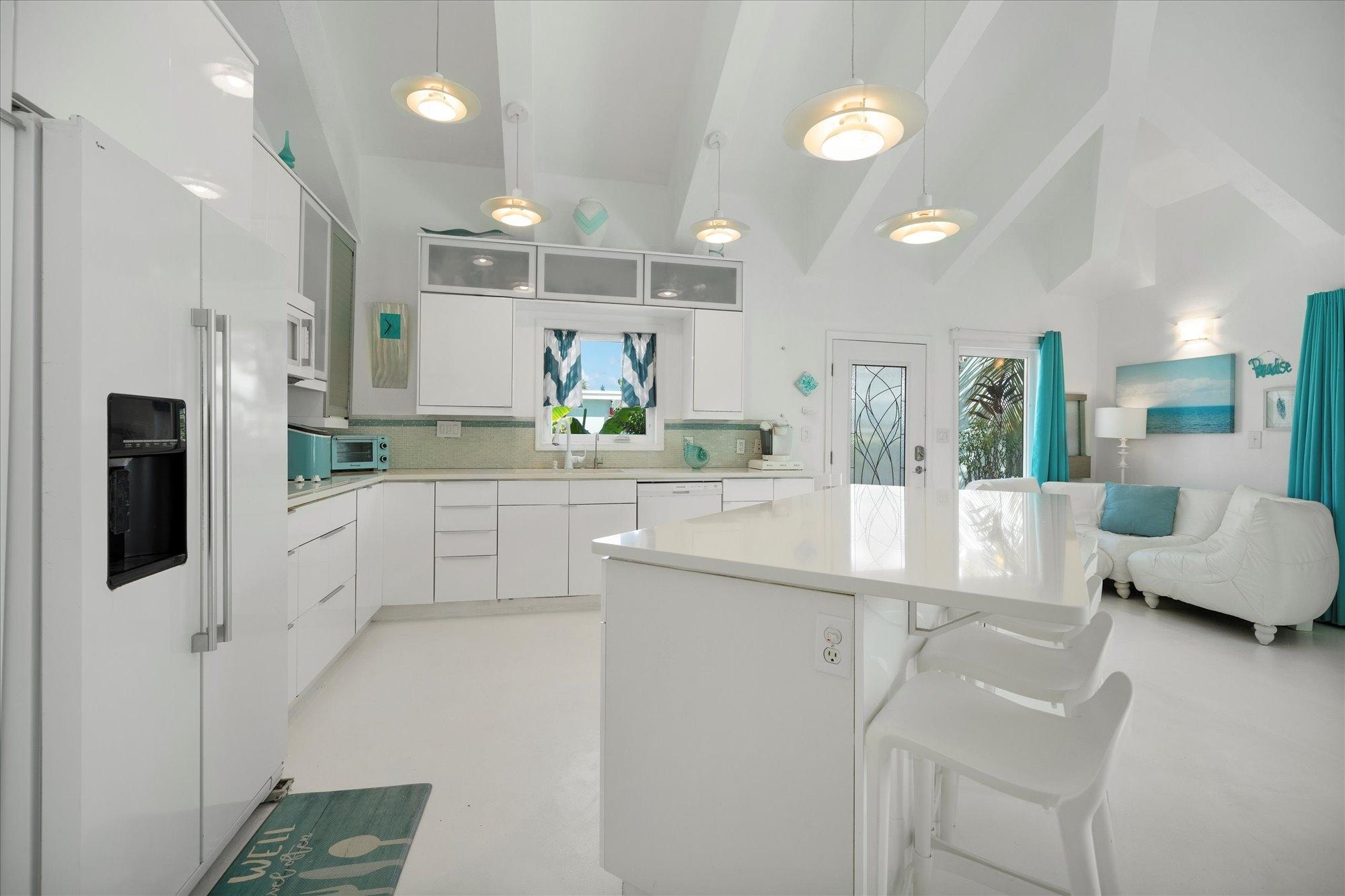 Just steps from one of Great Exuma’s most beautiful beaches, Aqua Dreams is a thoughtfully designed 4-bedroom, 3-bathroom property comprising a 3-bedroom main house and a separate 1-bedroom guest cottage. Built in 2015 using the resilient Gigacrete system, the home is engineered for low maintenance, with hurricane-rated glass, UV-treated air and water systems, and a whole-house generator. Interiors feature quartz kitchen countertops and painted concrete floors, while a saltwater dipping pool with solar-assisted heating and a tiled deck enhances outdoor living.