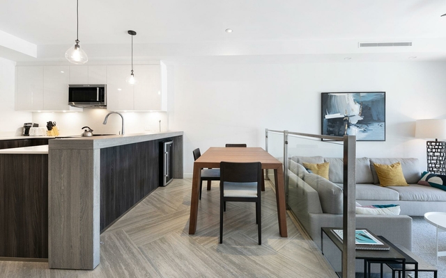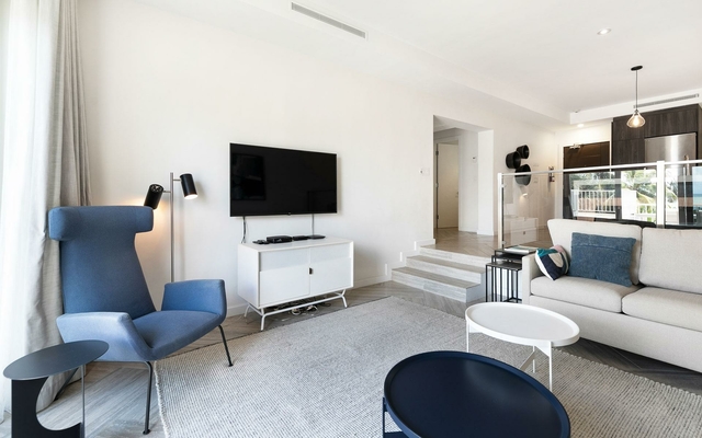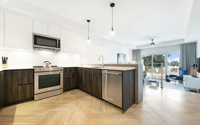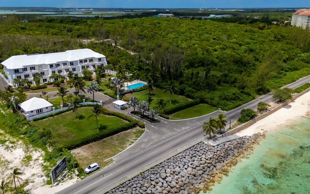 Set on a 5.29-acre elevated property overlooking the beach and ocean along West Bay Street, The Ocean Terraces present a one-of-a-kind opportunity to acquire a turnkey, 16-unit condominium building. The property is fully furnished with move-in-ready residences and includes ample land for at least two additional similar buildings on the hilltop above the existing structure. The current building is configured as follows: there are four penthouses—two with two bedrooms and two with three bedrooms. All penthouses feature soaring 14-foot ceilings and top-of-the-line appliances, including wine coolers. The three-bedroom units offer spacious master bathrooms with standalone bathtubs and bidets. In addition, there are ten two-bedroom, two-bathroom units, each equipped with Viking appliances and wine coolers, as well as two one-bedroom units with a den. Every residence boasts large ocean-facing terraces and in-unit laundry facilities. All ocean facing french doors have fully automated roll down shutters. The Ocean Terraces offer excellent potential for multiple income streams.