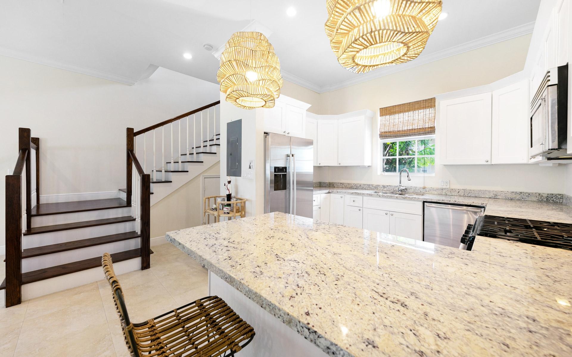 Welcome to Unit 70 in Balmoral. This stylish 2-bedroom, 2.5-bathroom end unit townhome offers 1,400 sq. ft. of living space and features the largest backyard of any 2-bedroom unit in Balmoral—perfect for outdoor living. The home boasts a renovated kitchen with white shaker cabinets, granite countertops, and high-end Bosch appliances. Offered fully furnished with designer furniture and window dressings. Additional features include impact windows and electric roll-down shutters on the glass doors for added security and storm protection. Located in the gated, family-oriented Balmoral community, residents enjoy top-tier amenities including a pool, clubhouse, gym, tennis courts, restaurant, grocery store, and 24-hour security. Utilities are paid by the tenant.