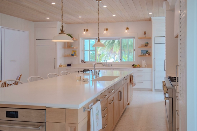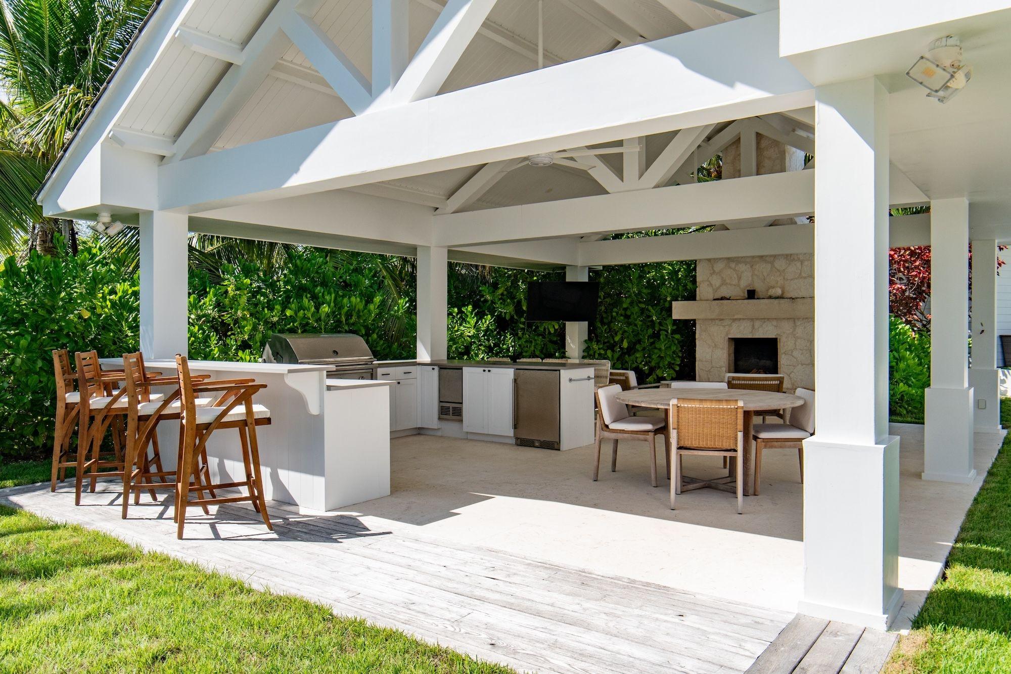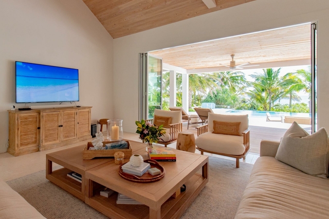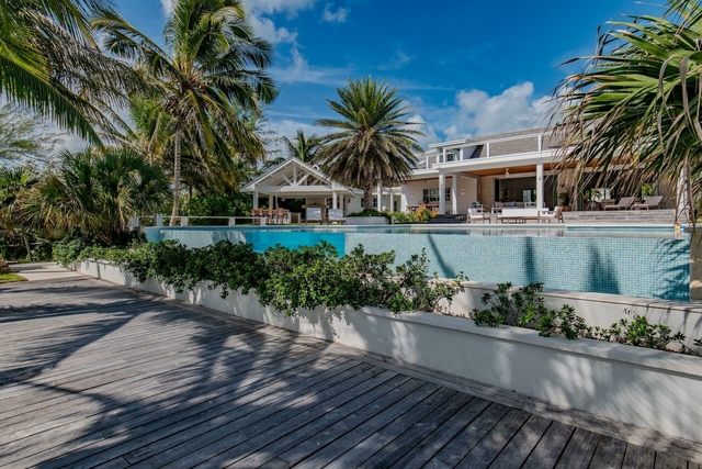 Nestled on the private island of Windermere along the Atlantic coast, lays a magnificent 2.4-acre property boasting 173 ft. of pristine pink sand beach. Ensuring maximum privacy, the estate features professionally landscaped grounds and benefits from Windermere Island’s 24/7 security. Completed in 2023, the expansive 10,000 sq ft property includes four primary suites, each with king-sized beds, walk-in closets, and ensuite bathrooms. Notably, one suite is a fully ADA-compatible option. An additional highlight is the epic bunk room, designed to comfortably accommodate up to six, complete with its own ensuite. Adding to the allure is a separate private owner’s cottage spanning approximately 1,000 sq. ft., with an outdoor bath and shower retreat. Each space is individually appointed with split A/C units and on-demand hot water systems. Seamlessly host gatherings with a spacious chef’s kitchen, oversized pantry, and a living room/dining area. The heated infinity pool, features a striking glass element child-friendly area, complemented by a sprawling 600 sq ft open-air outdoor kitchen.