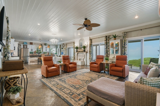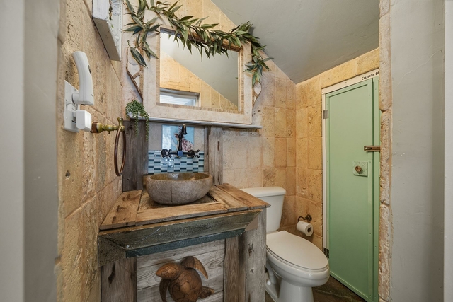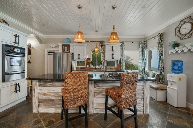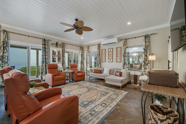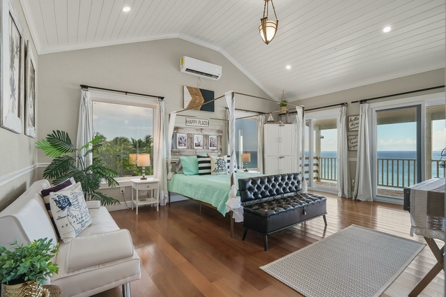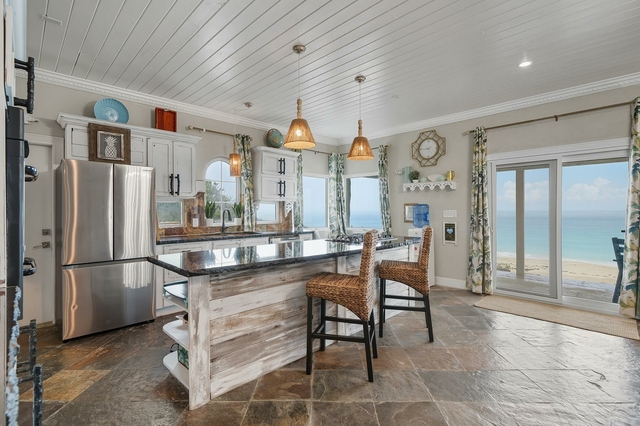 Nestled off the highway, this charming two-story Bahamian cottage sits directly above one of the best beaches on Great Exuma. Start your mornings on the back patio with coffee watching the waves, then spend your day enjoying the white powder beach and swimming in the crystal blue water. The lower deck is perfect for a sunbathing siesta and wrap the day on the upper balcony enjoying cocktails before dinner. As you enter the home, you’ll notice slate floors, an open-concept kitchen, dining, and living area with eclectic styling that feels instantly welcoming. The open concept gives ample space for the whole family to enjoy time together cooking, dining, and playing games while taking in the panoramic Exuma ocean view. Off the living area sits a half bath and garden-view bedroom, while upstairs boasts two oversized ensuite bedrooms with balconies to enjoy the unobstructed beach view. A major bonus feature of the house is its rooftop solar panels. With enough solar and battery backups, you don’t have to fret the electricity bill or power outages.