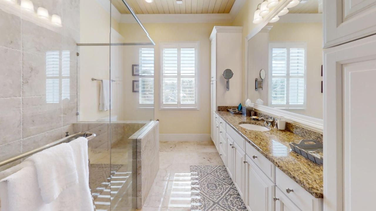 Pemba is an exceptional luxury 6 bedrooms, 8.5 bathrooms, 8,000 sq ft. beachfront estate situated on 2.291 acres with 145 ft. of the stunning 3-mile Treasure Cay Beach. The main home boasts a beachfront master suite with Hers/His own private baths with closets. A media room, office & gym added with the chef’s kitchen and vast open living/dining area sets this estate apart from all others. The outdoor space includes a large, protected pool with a travertine deck & pool house in addition to a 2,280 s/f covered patio extending along the entire beachside of the home. A separate 2 bedroom, 2 bath, guest house features an open living, dining, and kitchen area. This unparalleled caliber of luxurious beach front living being poised on tropically landscaped powdery white sand beach frontage is a not to be missed opportunity to own a residence on the world-famous Treasure Cay Beach. Additional amenities include two car garages & a backup generator. This estate property is a must see, book your appointment today.