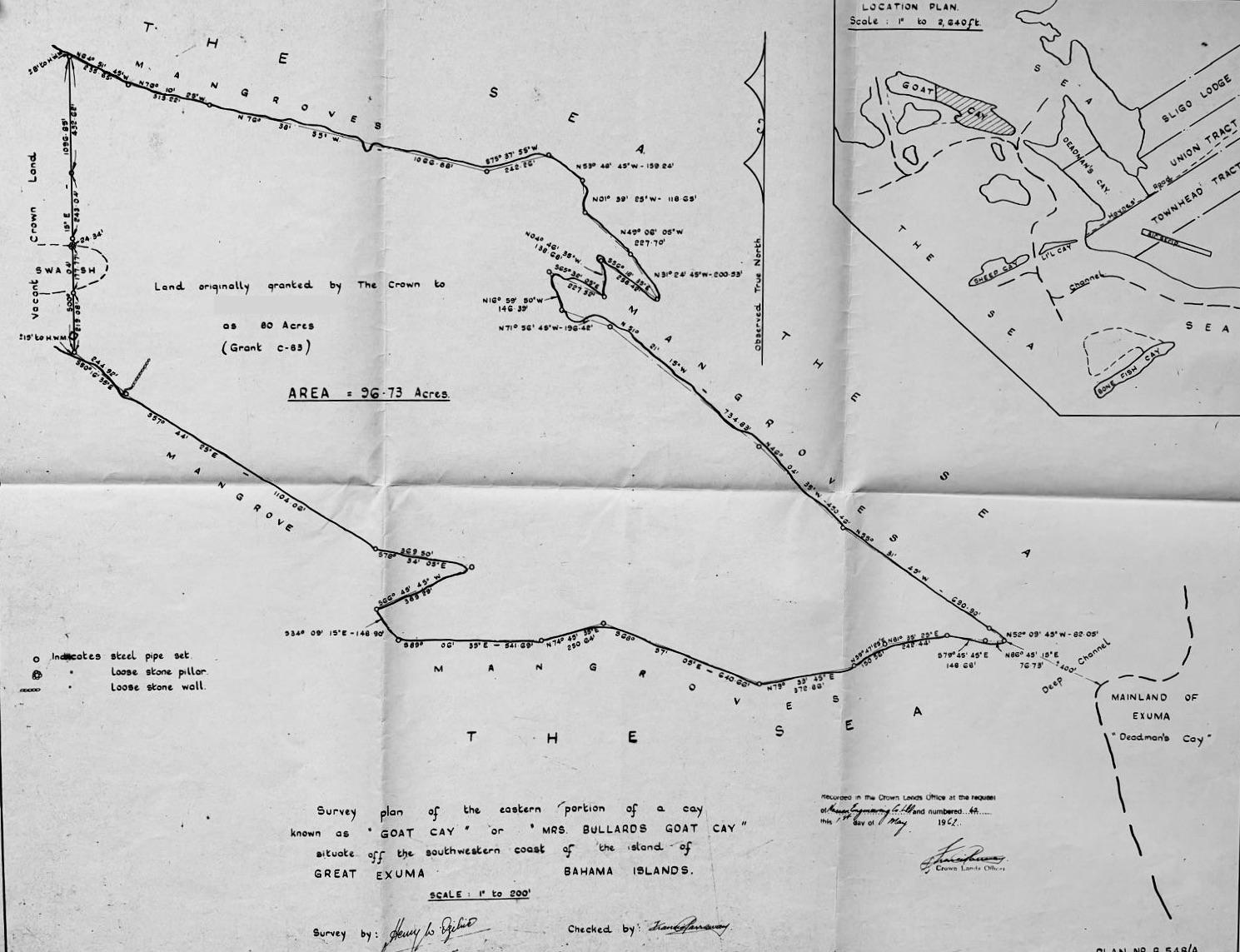 A beautiful Private Island with great views. The Cay is also known as Goat Cay or Mrs. Bullards Goat Cay. The Cay is situated on the southwestern coast of Great Exuma. The southeastern tip of Big Bullard Cay is situated only about 400 feet from the area known as Deadman’s Cay on the mainland of Great Exuma. A deep channel separates the Cay from the mainland at that SE tip. The southern side of the Cay is bordered by shallow water, the greater portion by marl and mangroves. Nearby on the southeastern coast of Great Exuma lies Crab Cay. 96.73 acres of the Cay are available for sale; the remainder is Crown Land. Access is available from a lot on Deadman’s Cay, suitable for building a dock.