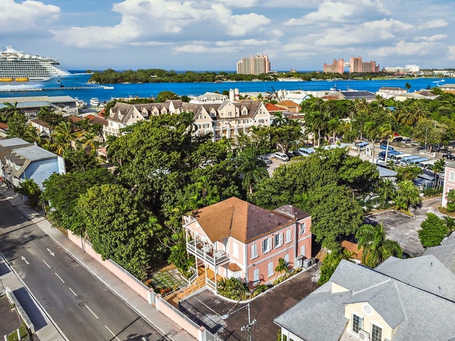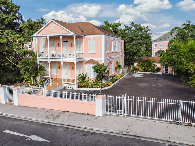 Welcome to Lyndhurst House, a charming two-story colonial Bahamian-style building situated in the heart of downtown Nassau’s bustling commercial district. Built in the 1800s, this historic property blends timeless elegance with a prime location, making it an ideal space for your business. Currently used as a residential property, most furnishings will be removed, allowing you the freedom to customize the interior to suit your business needs. With approximately 3,900 sq. ft. of flexible space, Lyndhurst House showcases a unique mix of colonial architecture and tropical flair. The spacious rooms, featuring warm wooden and ceramic floors, provide a perfect setting for offices. The large covered balcony can be transformed into a stylish outdoor lounge, client meeting area. The property also includes a 350 sq. ft. building, ideal for extra office space, a private studio, or a small retail shop.