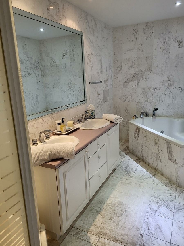 The living room bathes in natural light through floor-to-ceiling windows offering panoramic views of the cerulean ocean waters and the pristine white-sand beaches. The master suite is a haven of sophistication boasting a spacious layout and a luxurious en-suite bathroom with an oversized walk-in shower featuring exquisite tilework and modern fixtures Offering a gorgeous ocean view from the private balcony just steps away from your bed its refined design and comfort guarantee a peaceful retreat. Two additional en-suite bedrooms provide comfort and privacy for family members or guests each thoughtfully designed with elegant finishes and ample closet space The half-bathroom for guests ensures convenience and functionality. Residents of The Oceanview relish a range of world-class amenities including private beach access, a beachside pool for refreshing swims right at the oceans edge and a tennis court for the active enthusiast. The community’s serene surroundings provide an ideal backdrop for relaxation and recreation. Enjoy proximity to upscale dining shopping/ entertainment.