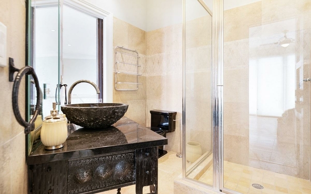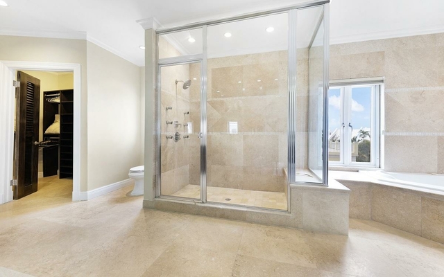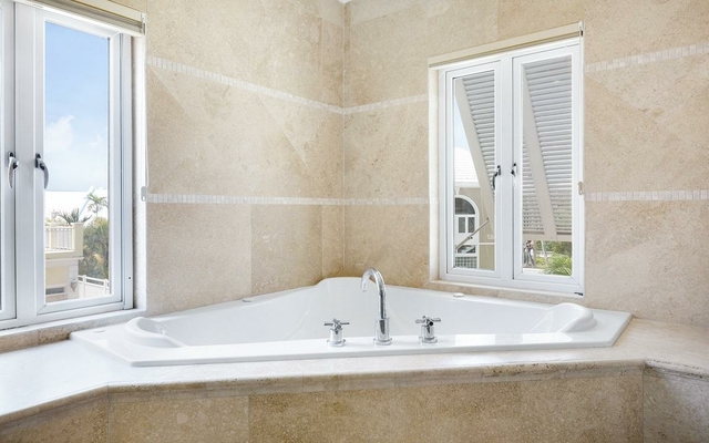 This 4 bedroom, 4 1/2 bathroom house with separate living room area, dining room area, family room area, and breakfast nook off of the kitchen is located on Paradise Island just steps away from the famous One and Only Ocean Club and Cloister Gardens. Enjoy the lifestyle that Paradise Island has to offer with endless shops, restaurants, beautiful beaches, spas, and The Atlantis Casino. The finest finishes and furniture available today have been used to complete this magnificent home. Special features include: -Theatre room with theater seats, surround sound, and 90′ TV. – Plasma TV’s in all bedrooms and breakfast nook – Speakers and volume control in every room – Each room hard wired for internet – Stereo equipment includes satellite radio – Security camera with intercom at main entrance door – Hot tub on second floor balcony – Steamer in master bathroom shower complemented by 6 body massage jets – Travertine floors with custom travertine stair treads – Spectacular glass stair rail – Granite counter tops – Miele kitchen appliances – Custom kitchen cabinets – Custom doors throughout