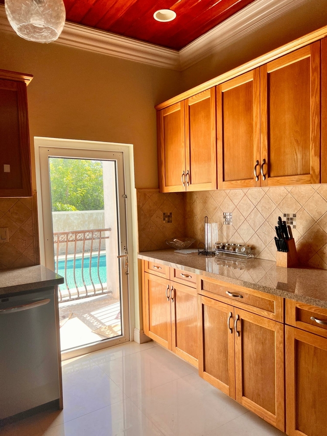 Tranquil Living in Venice Bay gated community. Step inside this huge 3 bedroom, 2.5 bathroom, 3 story townhouse with a loft on the third floor that can be used as a gym, office, or a fourth bedroom. This unit comes fully stocked as it was built for the owner of the complex with extra living, yard space, generator, swimming, and parking. Admire the lush landscaping as you walk up to the double glass entry doors, and step inside the foyer that leads to the second entry door to be greeted with natural light gleaming tiles, and wood ceilings with recess lighting throughout.