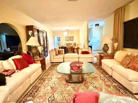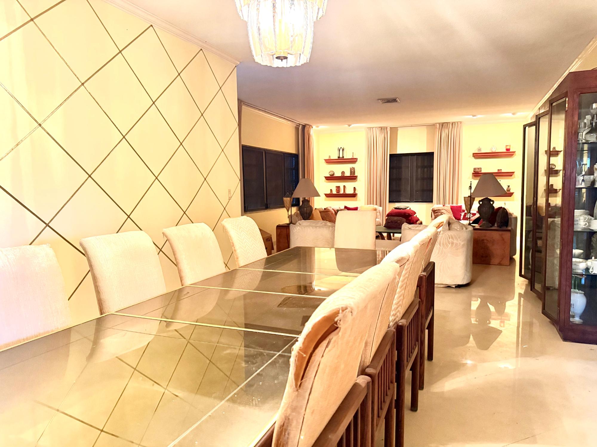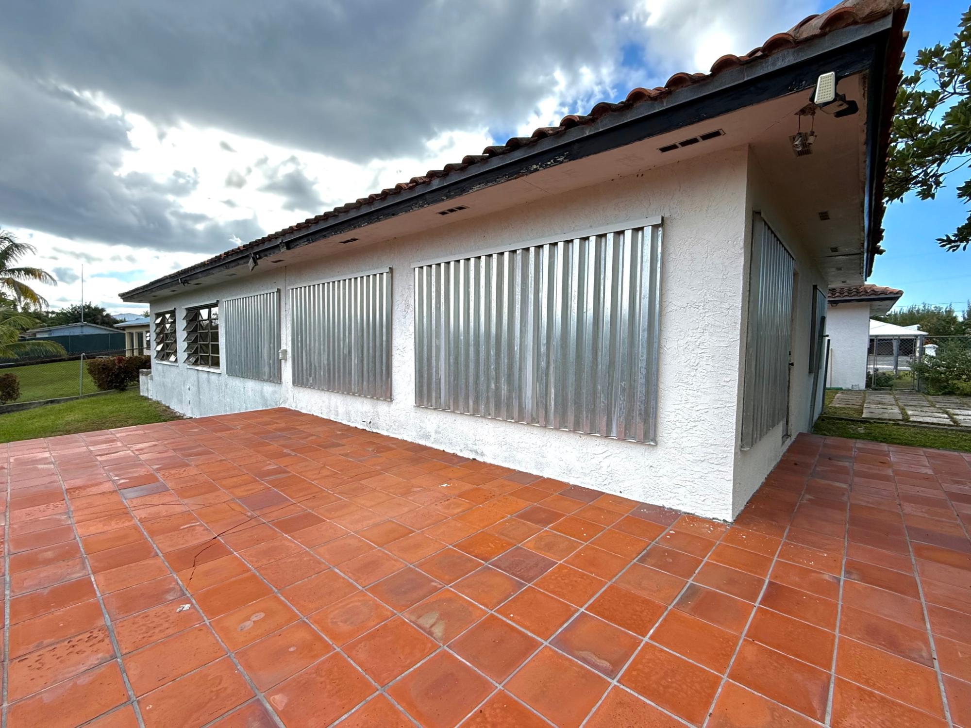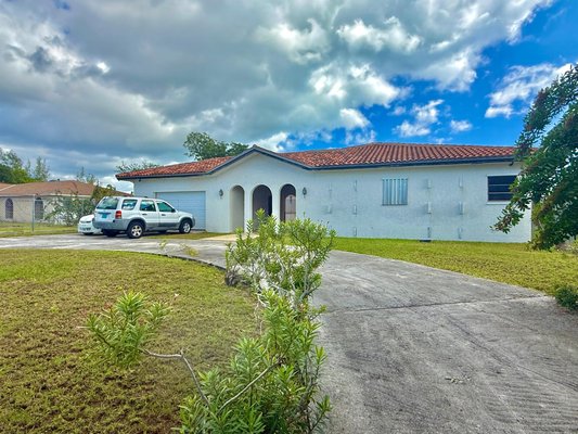 Canal-front home in Bahama Terrace offering approximately 5,100 sq. ft. with 100 feet of canal frontage and 3 minutes to the open ocean by boat. Built in the 1990s with solid construction in a well developed waterfront neighborhood, this 4-bedroom, 3-bathroom home features a covered entrance courtyard, hurricane shutters, clay tiled roof, and a fully fenced lot with front entrance wall. The layout includes a central foyer, expansive living and dining areas, a large kitchen with breakfast nook overlooking the water, and a private bedroom wing with the primary suite at the end with its ensuite bathroom. The 3 guest bedrooms share 2 guest bathrooms that are in the hallway. Additional features include a garage with lots of storage and a laundry area. Exterior and landscaping need some TLC, offering excellent potential to enhance a well-built canal-front home in an established neighborhood.