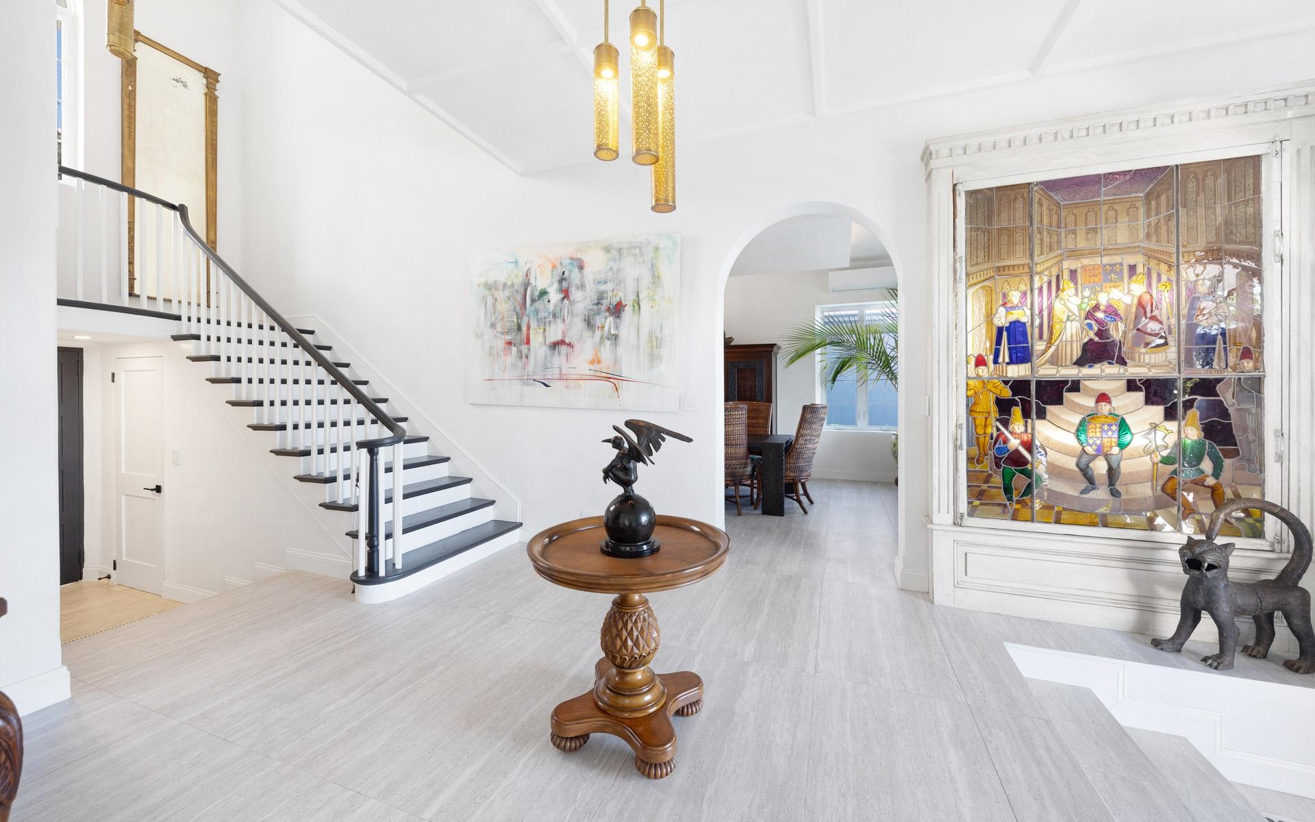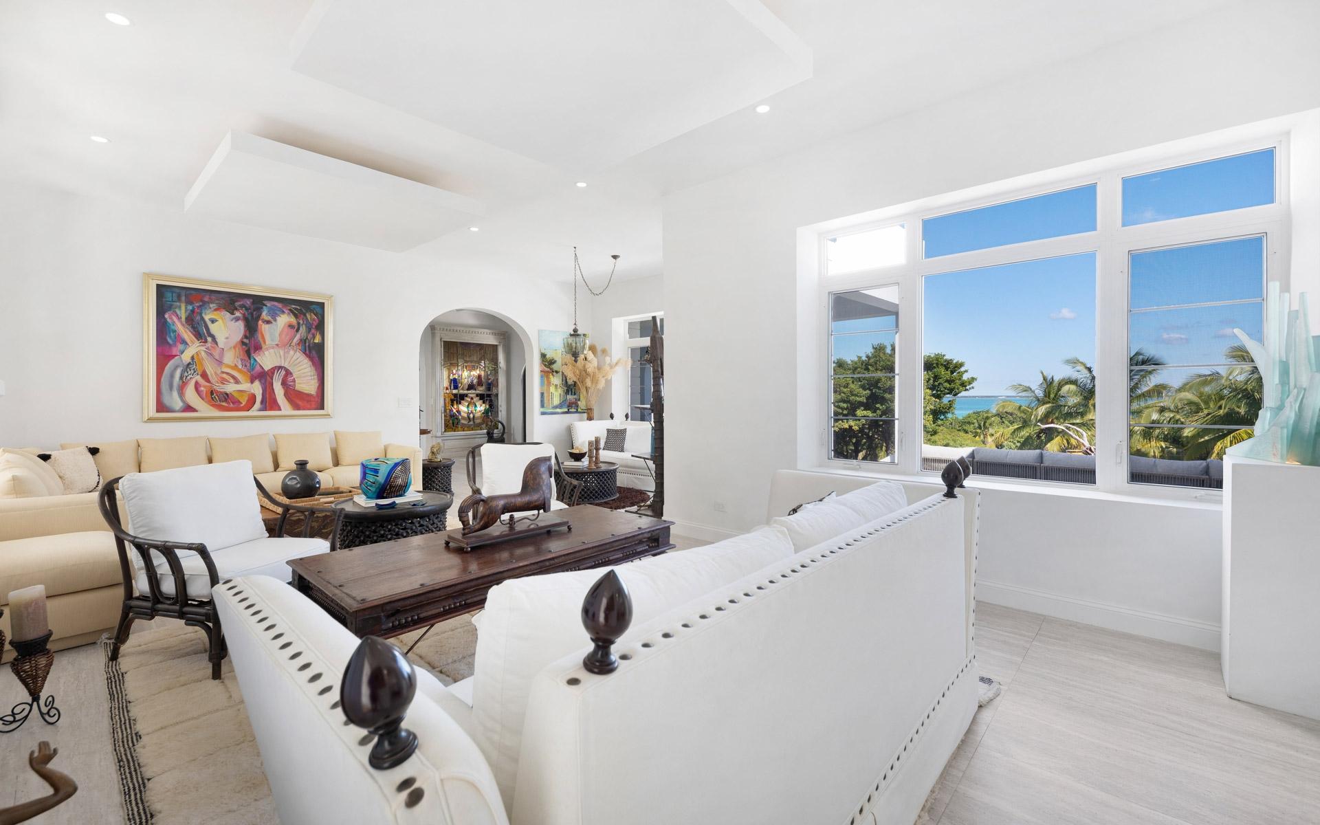 Beaumont is a Private, Tranquil 2.55-acre sanctuary Estate with stunning hilltop views of the Bay and Ocean. Recently renovated, this property offers complete privacy and peace with qualities found in only a handful of estate properties in Nassau. The areas surrounding the house mostly retain their existing landscape, and Beautiful Stone Walls complement the natural ambience of the entire property. Numerous mature tropical fruits and flowering trees are abundant. There are 6 Bedrooms, 4.5 Bathrooms, Staff Quarters (Bedroom, Bathroom, Kitchen and Patio), Formal Living Room, Formal Dining Room, Family Room/Bar, Kitchen, Breakfast, Gym/Pool Changing Room, Three Bedrooms on the Upper Level leading out to Two Balconies, Two Bedrooms on the Lower Level leading out to Terraces and a 2 Car Garage. The Pool Cabana and Deck Area allow winter enjoyment and sunbathing. The Expansive Acreage allows for the addition of Guest Cottages or a Studio. Truly one of the last remaining Estate Properties of this size available in Nassau.